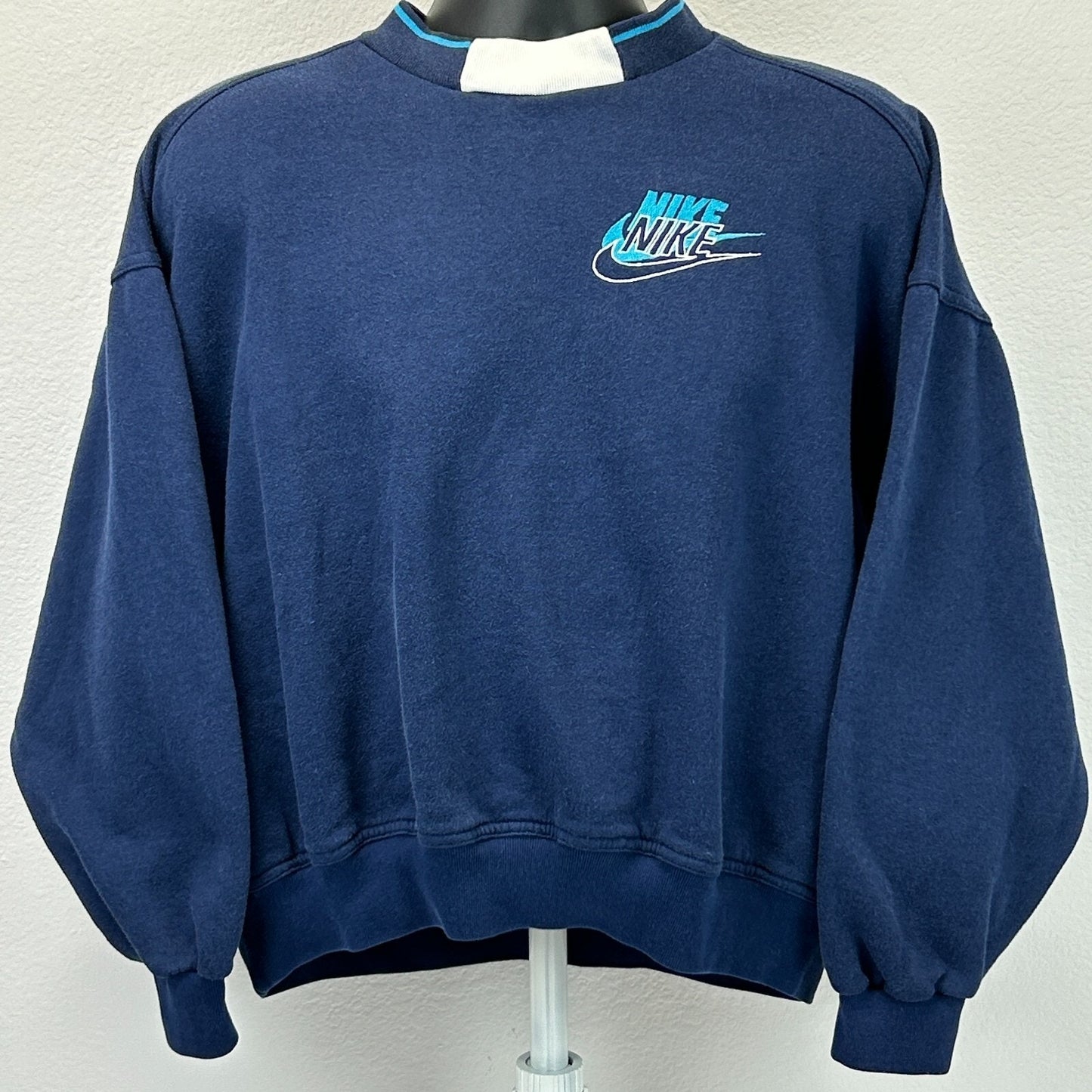 Vintage 90s Nike Sweatshirt Mens M Medium Long Sleeve Crew Neck Sweater Blue
