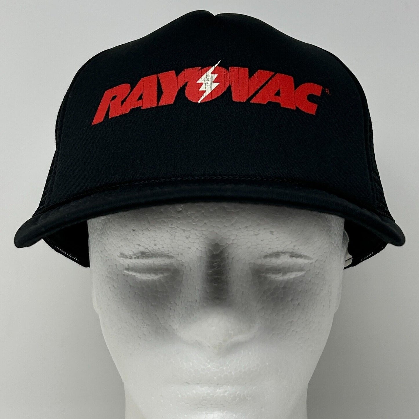 Vintage 90s Rayovac Batteries Trucker Hat Cap Battery Mesh Snapback Black