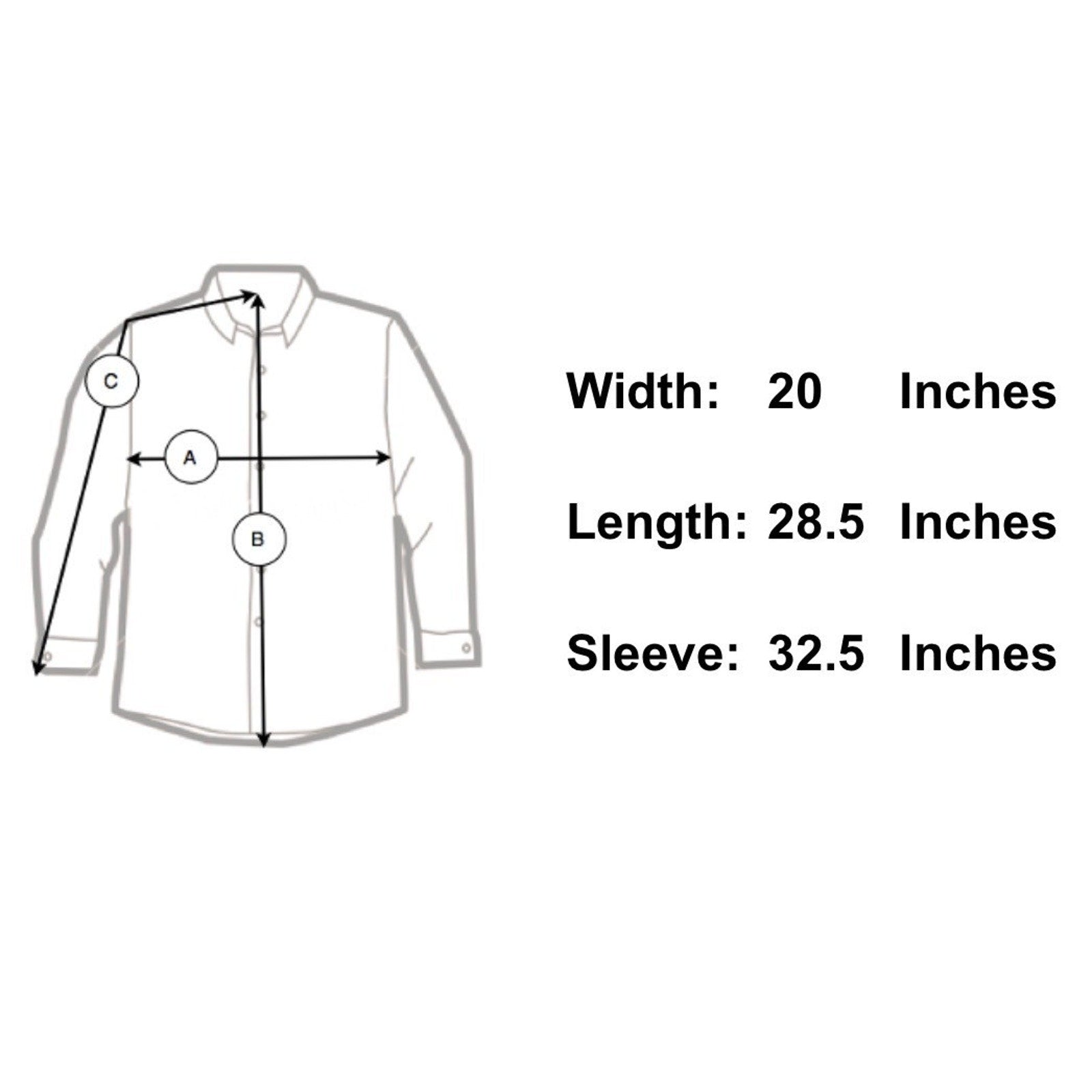 Sleeve Length 32.5" - From the center of the back of the neck to the shoulder to the bottom of the sleeve