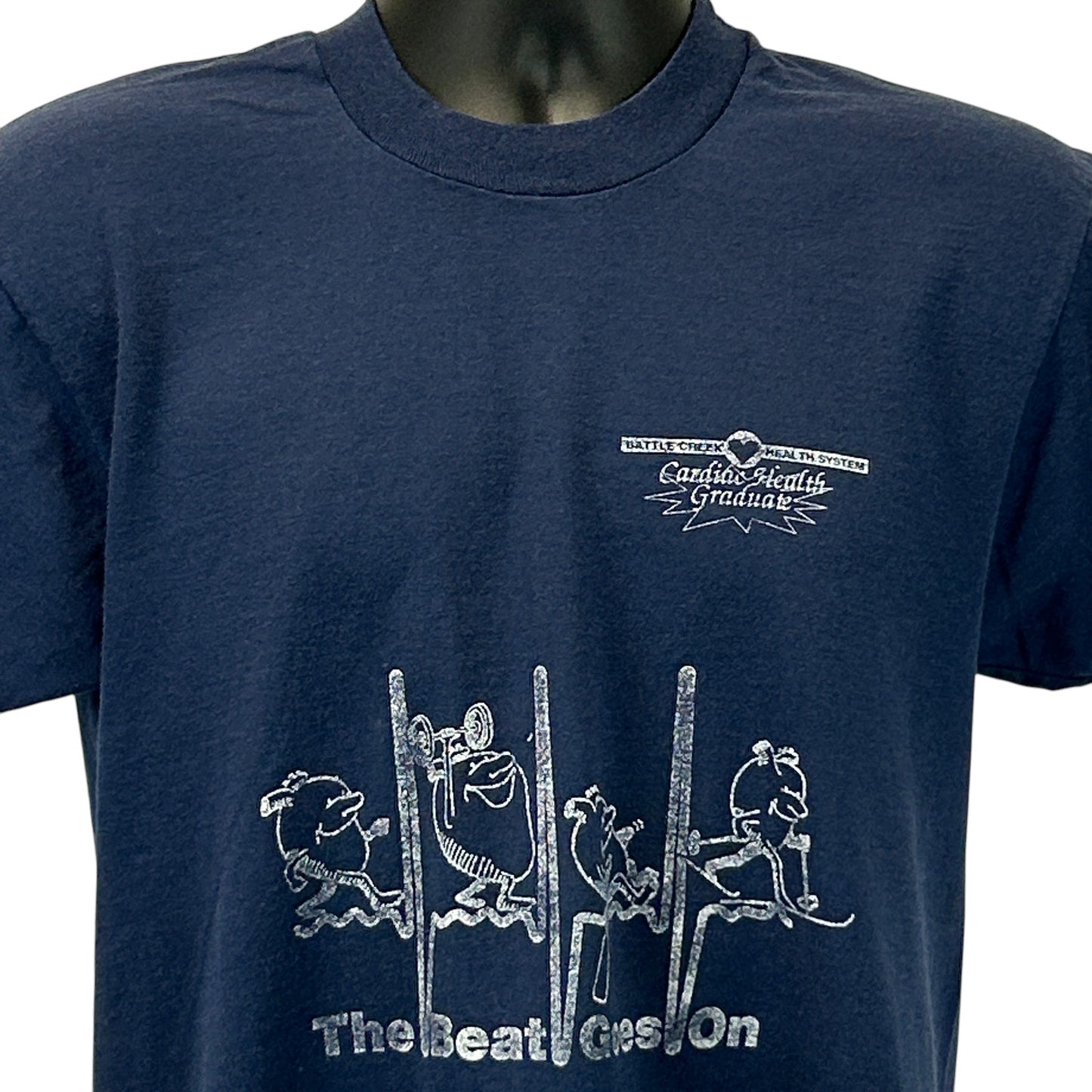 Vintage Battle Creek Health System The Beat Goes On T Shirt Mens Medium Michigan Cardiac Health Graduate Cardiology Heart Doctor Nurse 90s Blue Screen Stars Best Single Stitch Made In USA Graphic Tee