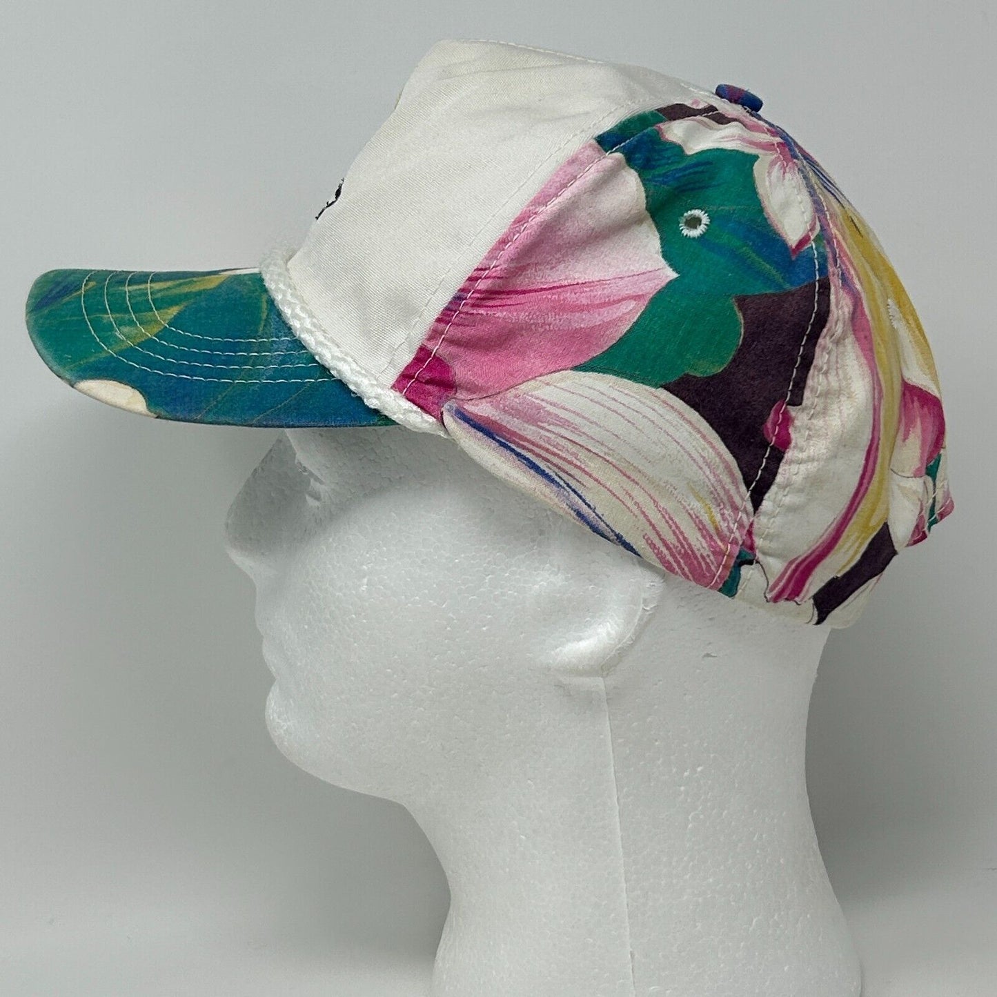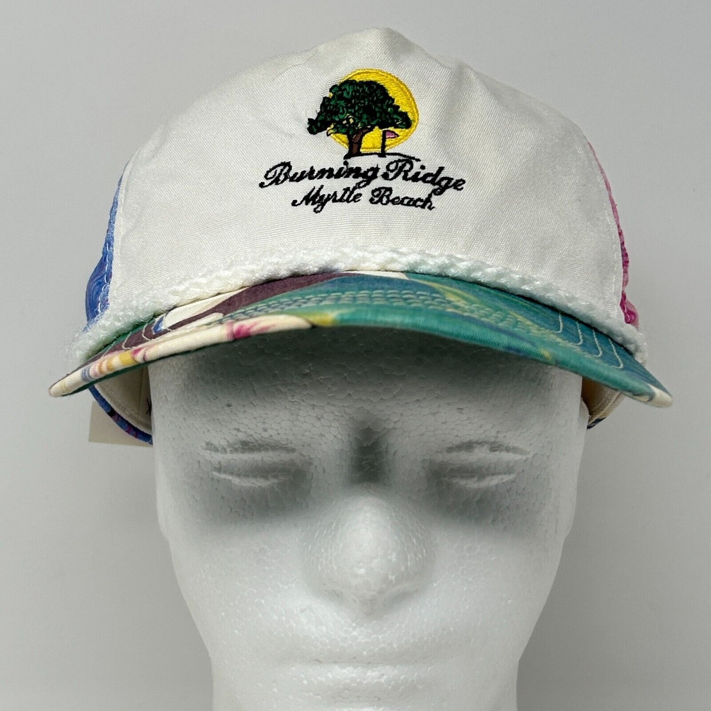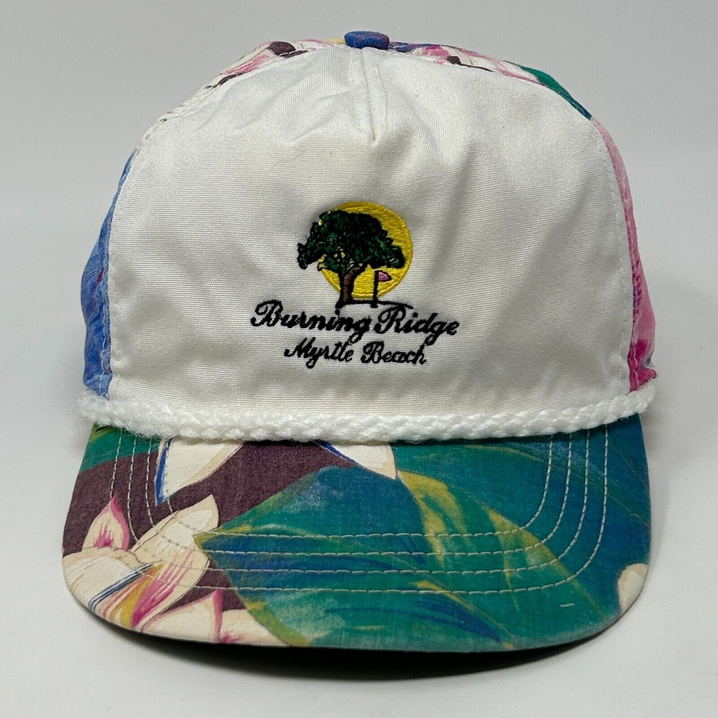Vintage Burning Ridge Golf Club Myrtle Beach Hat Baseball Cap Golfing Golfer South Carolina Hawaiian Floral Flowers Town Talk Rope Roping Cord Corded Five Panel A-Frame Strapback White
