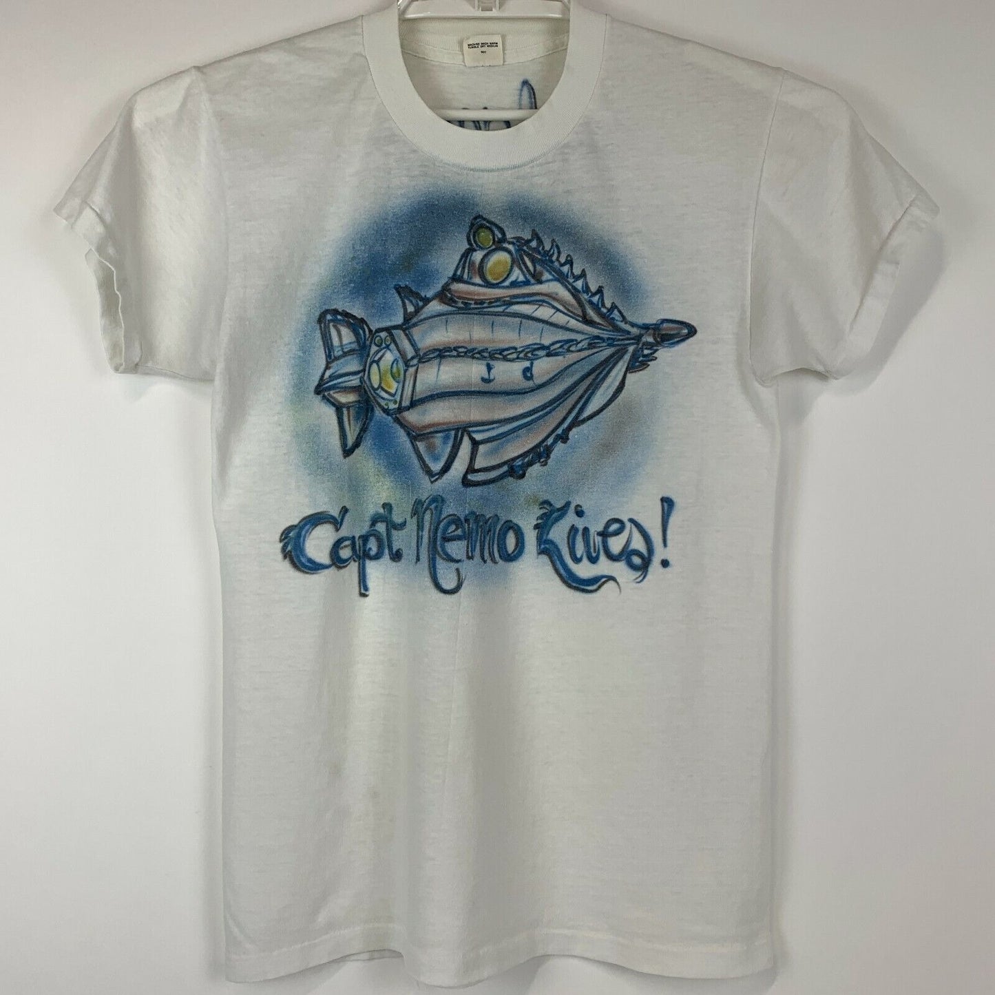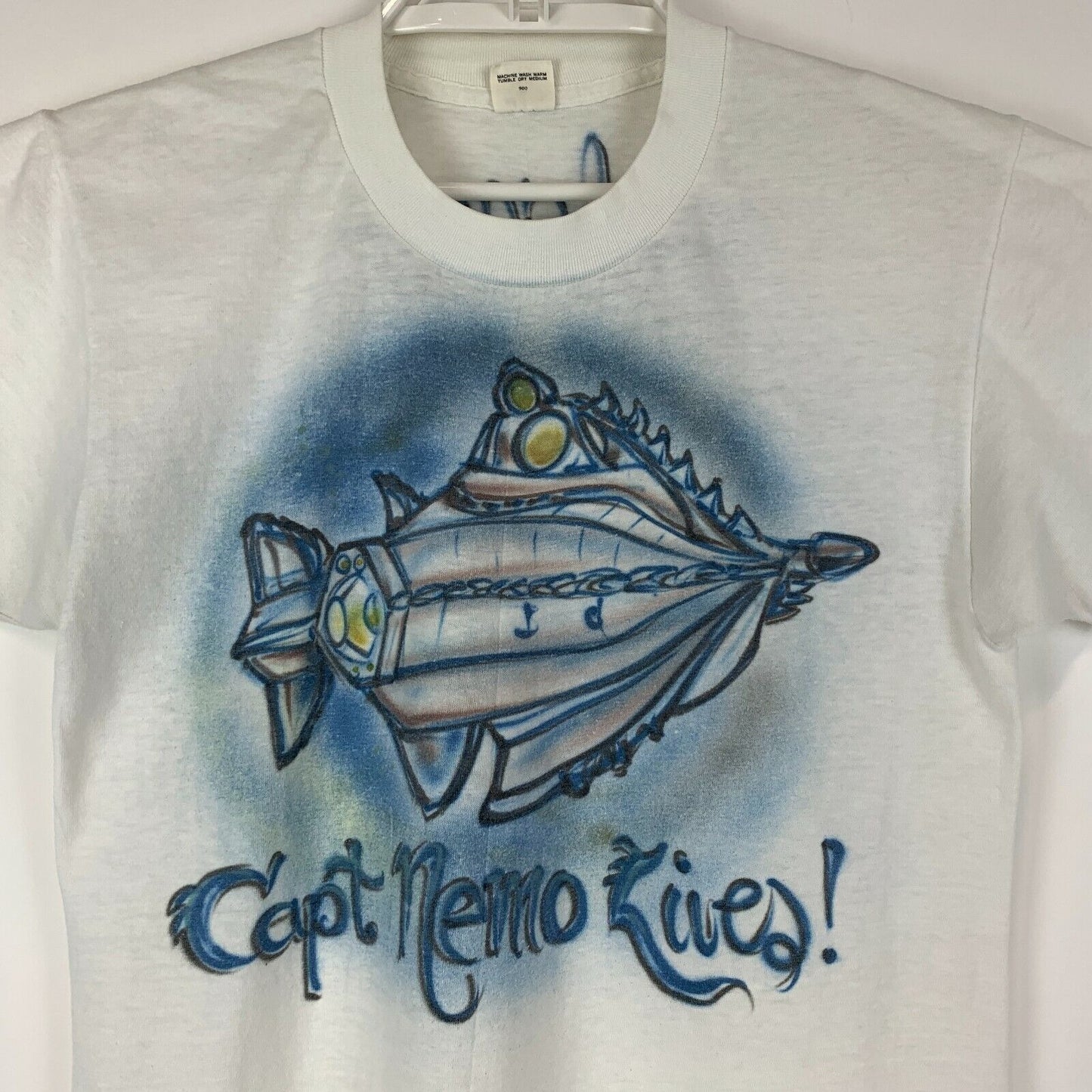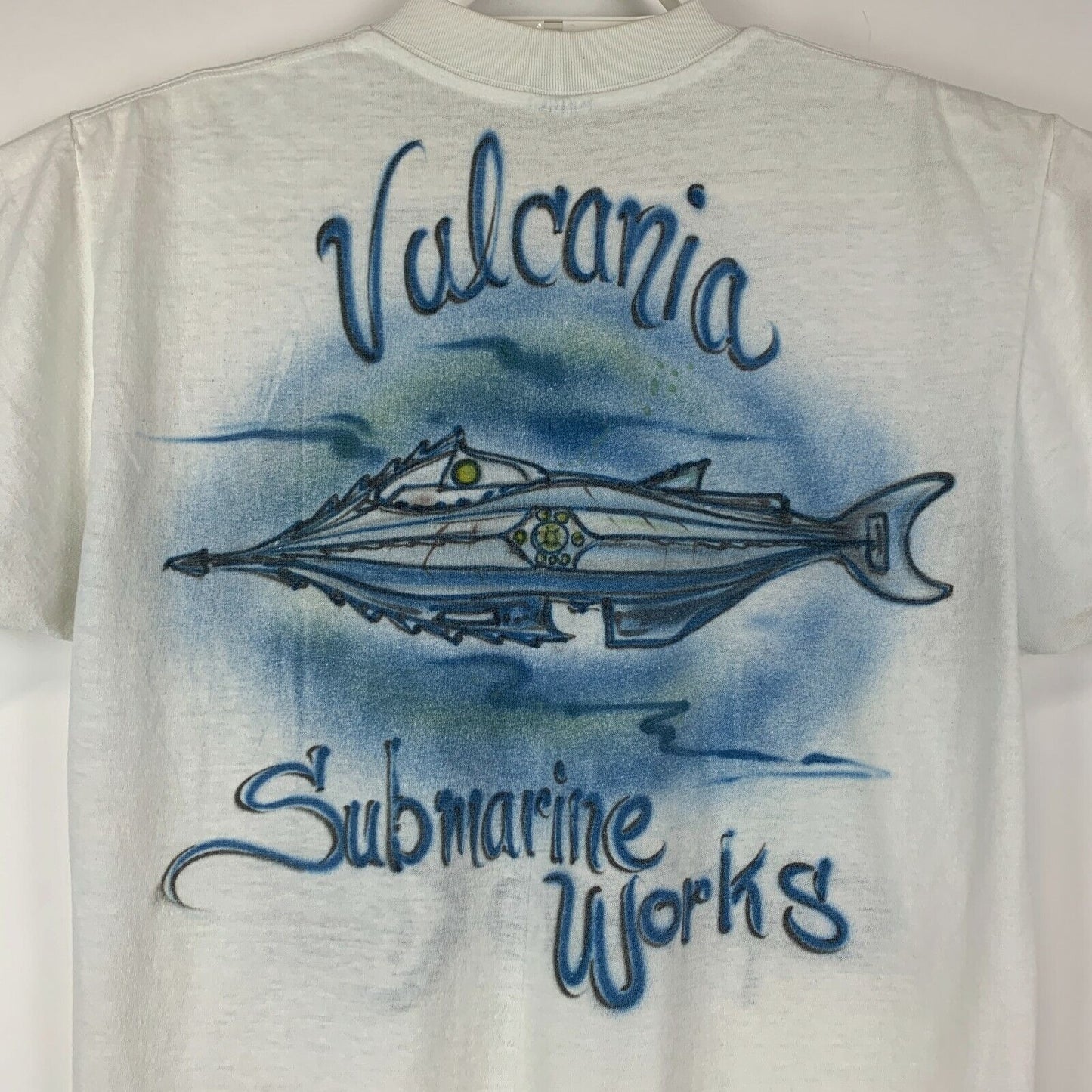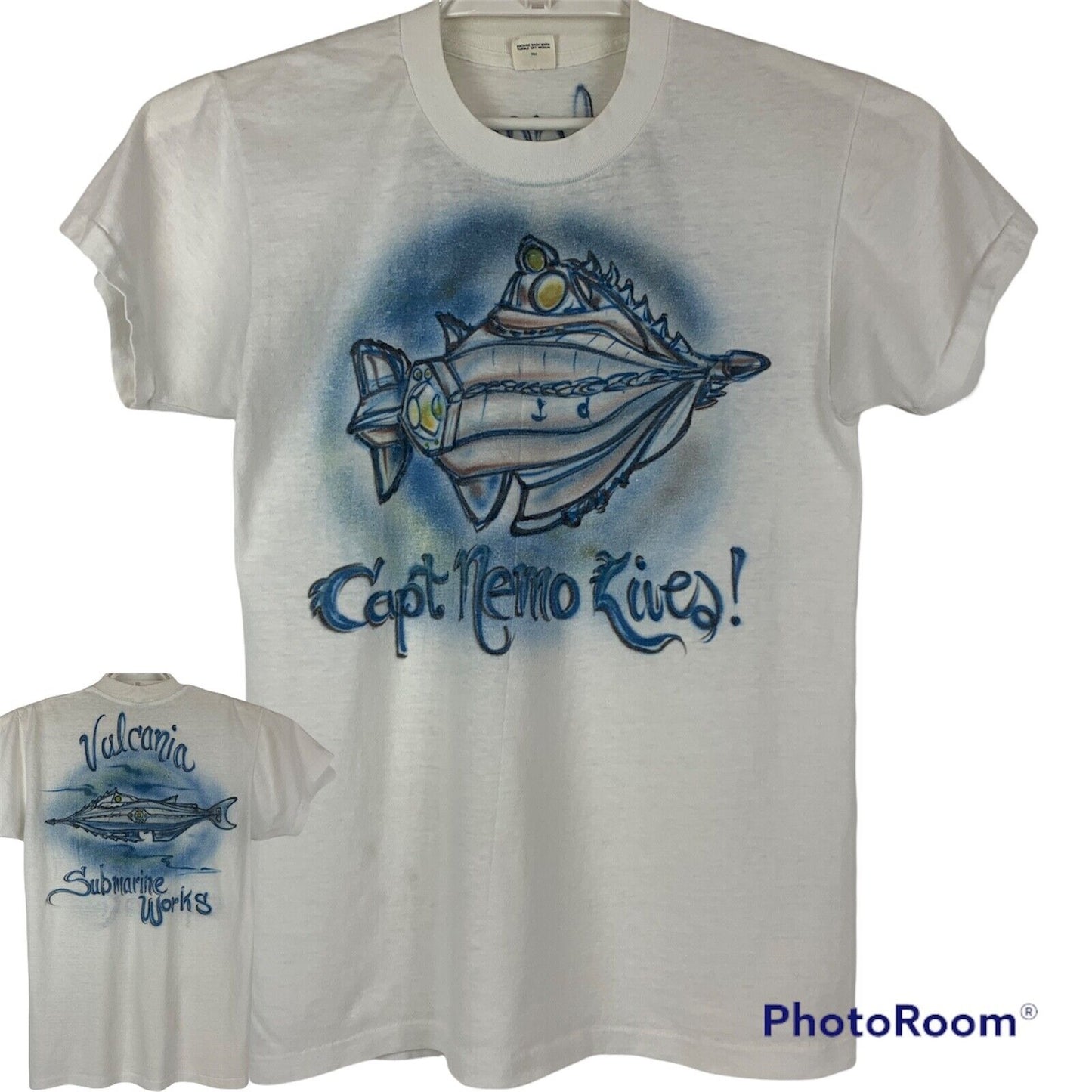 Vintage 1980s Captain Nemo Lives! Vulcania Submarine Works T Shirt 20,000 Leagues Under the Sea Submarine Voyage Hand Airbrushed Disneyland Walt Disney World Magic Kingdom Tourist Tourism K-Mart Single Stitch Made In USA Graphic Tee