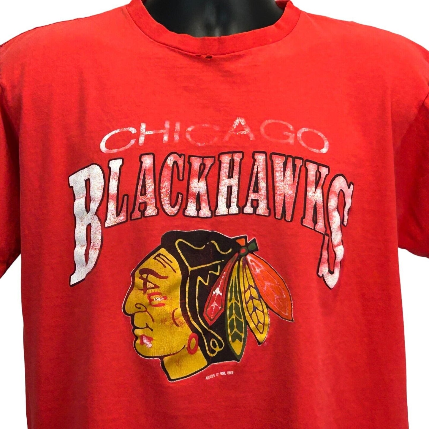 Camiseta vintage de los Chicago Blackhawks para hombre, talla grande, color rojo, de hockey de la NHL, fabricada en EE. UU., años 80