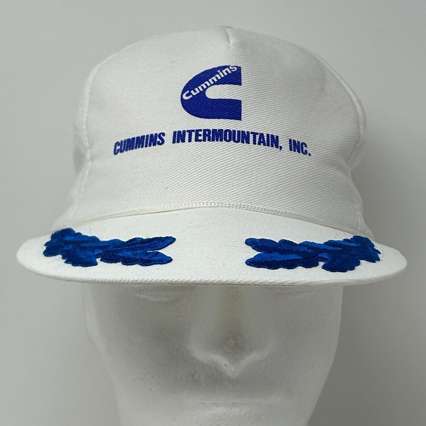Vintage Cummins Intermountain Inc Baseball Cap Hat Diesel Engines Las Vegas 80s Blue Gold Leaves Leaf Scrambled Eggs Embellishments Capital Snapback White Five Panel A-Frame