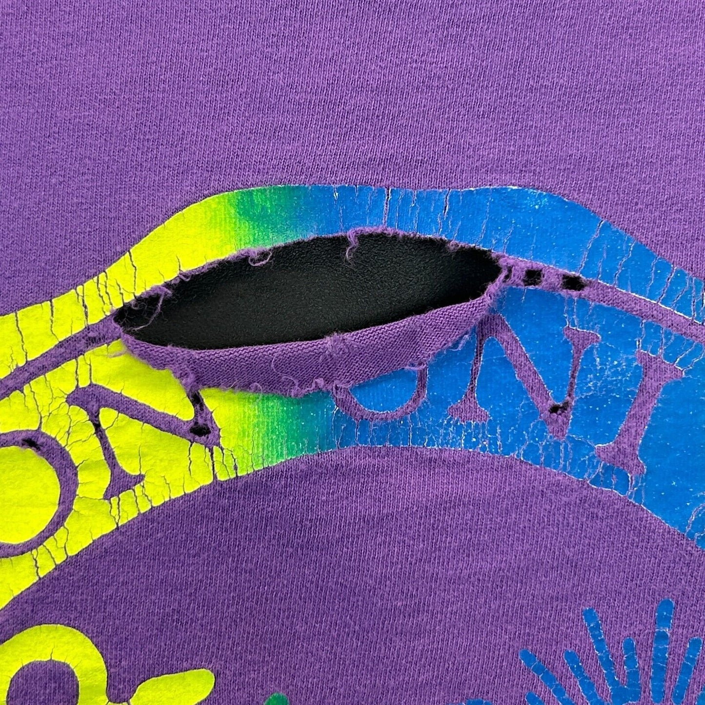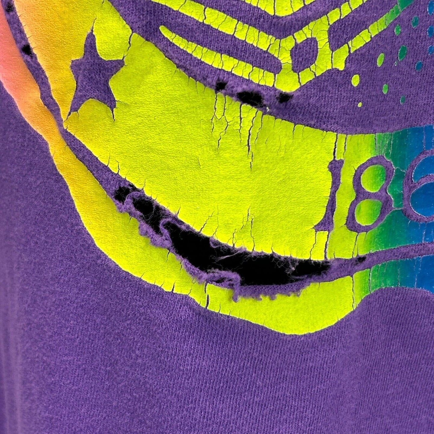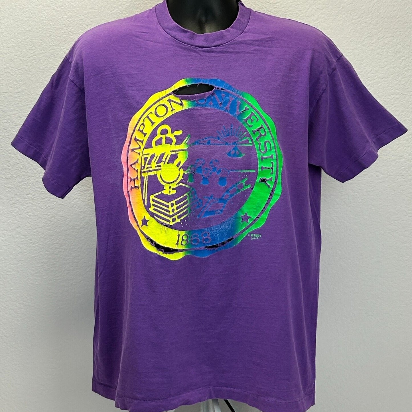 Vintage Distressed Hampton University Pirates T Shirt Mens X-Large College NCAA HBCU Virginia 80s 90s Purple Fruit of the Loom Single Stitch Made In USA Graphic Tee