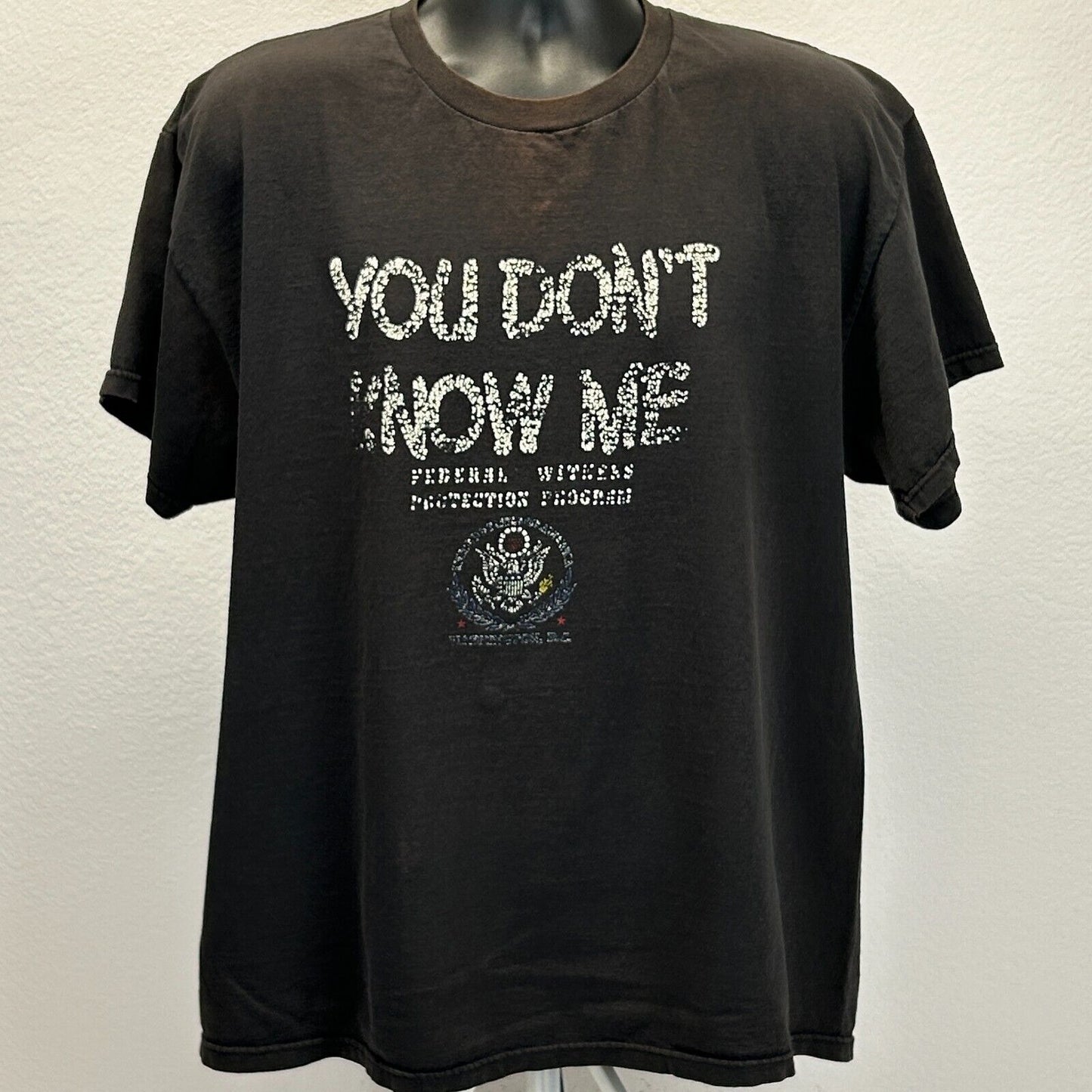 Vintage You Don't Know Me Federal Witness Protection Program T Shirt Mens X-Large Washington DC Y2Ks Black Graphic Tee