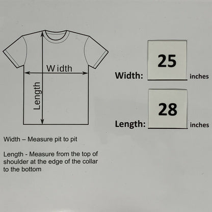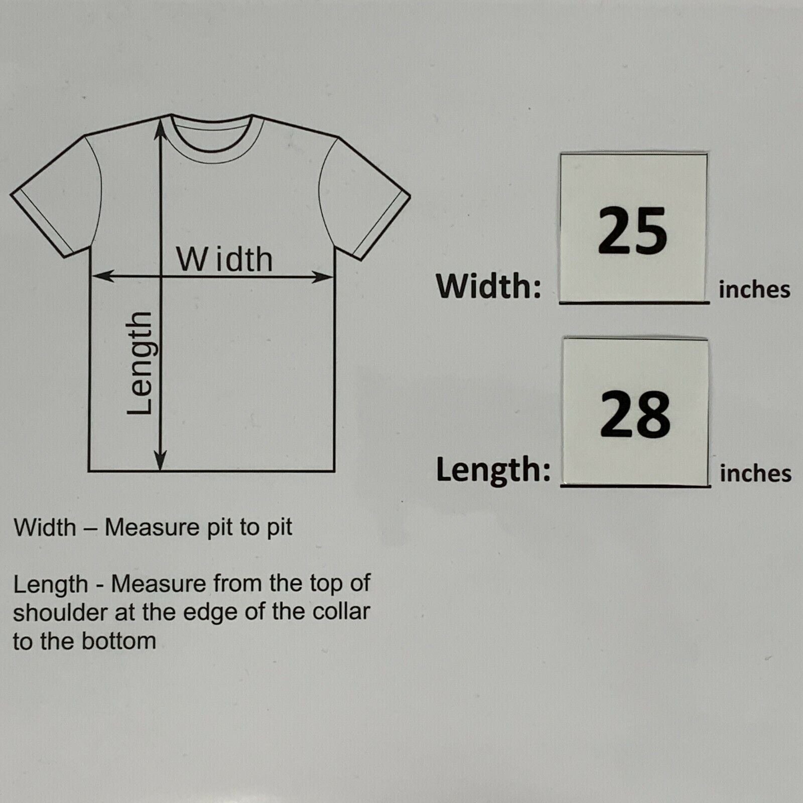 Length 28" - Measure from top of shoulder, at the edge of collar, to the bottom of the shirt