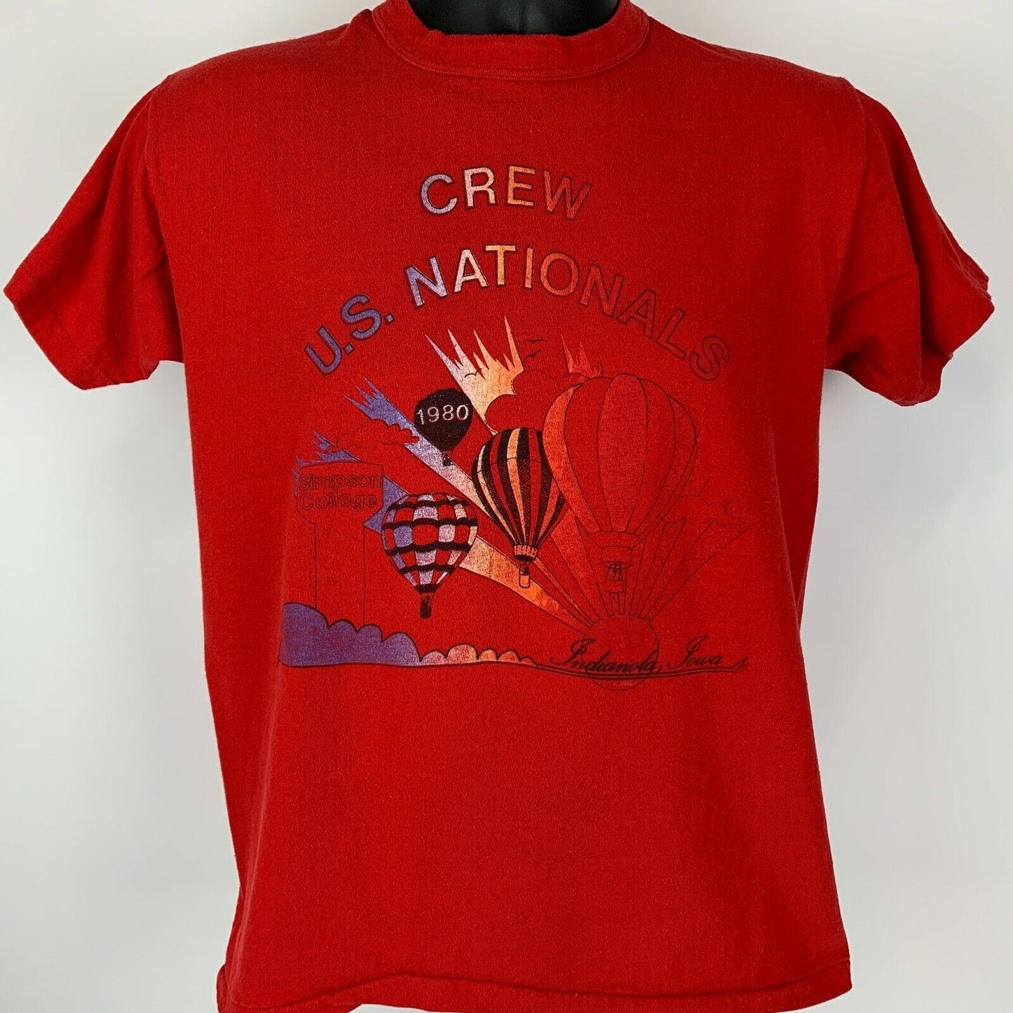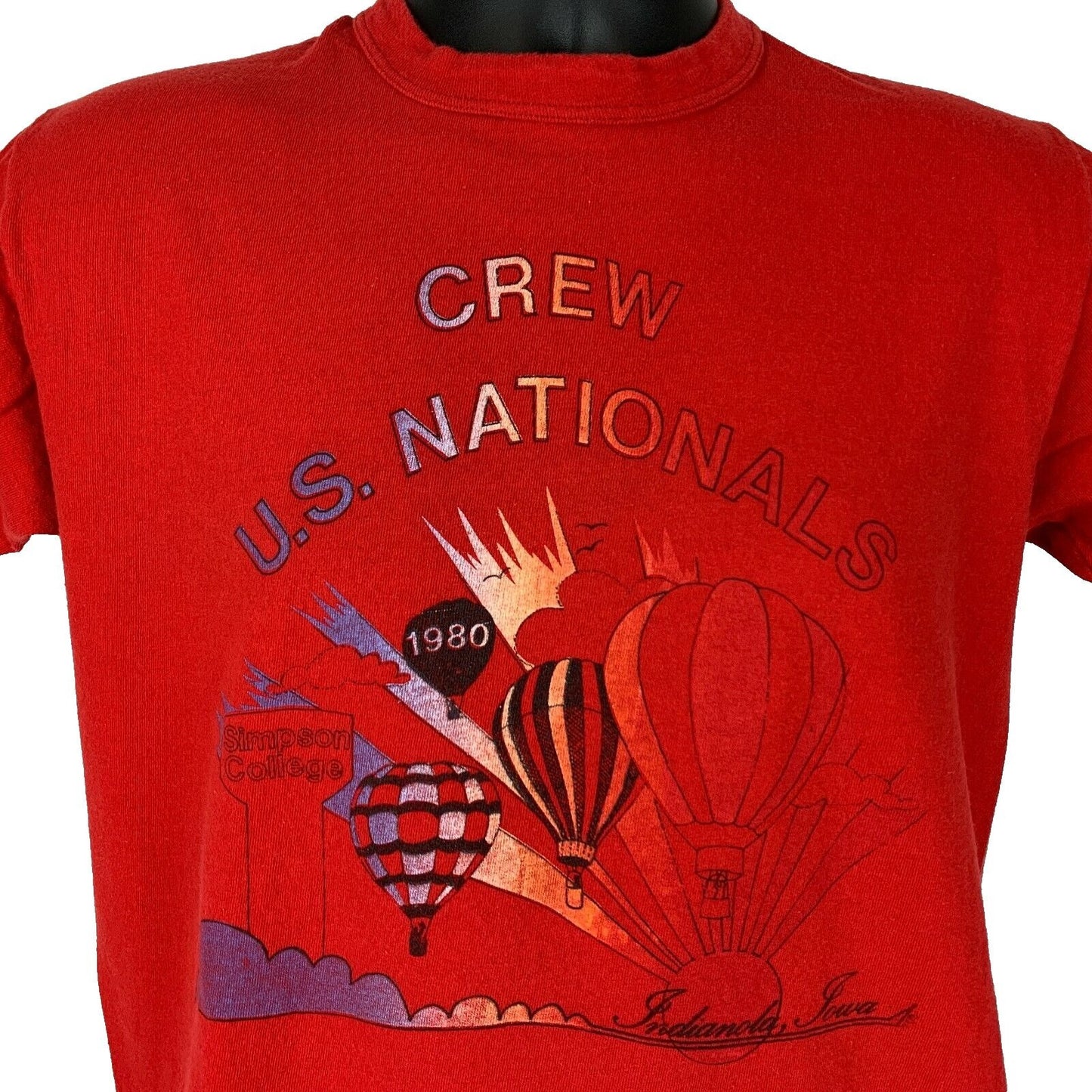 Vintage 1980s 1980 Indianola Hot Air Balloon US National Crew T Shirt Iowa Simpson College Russell Athletic Red Single Stitch Graphic Tee