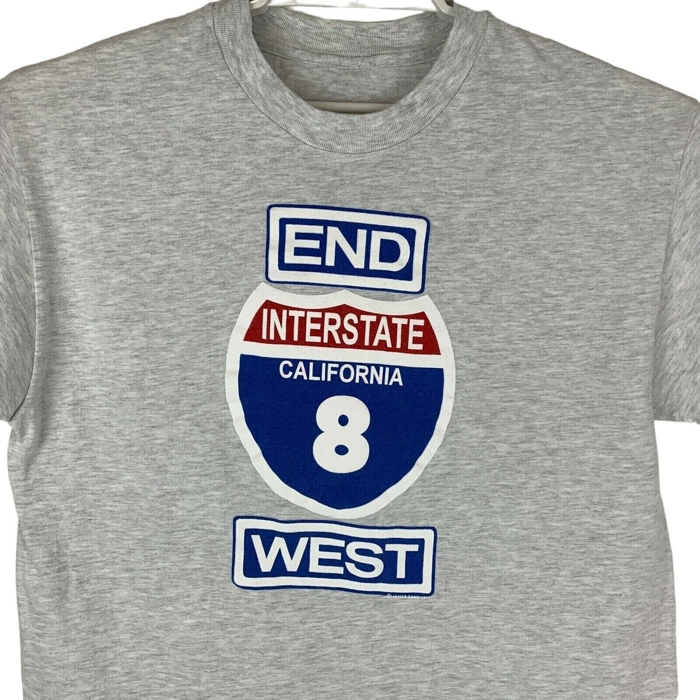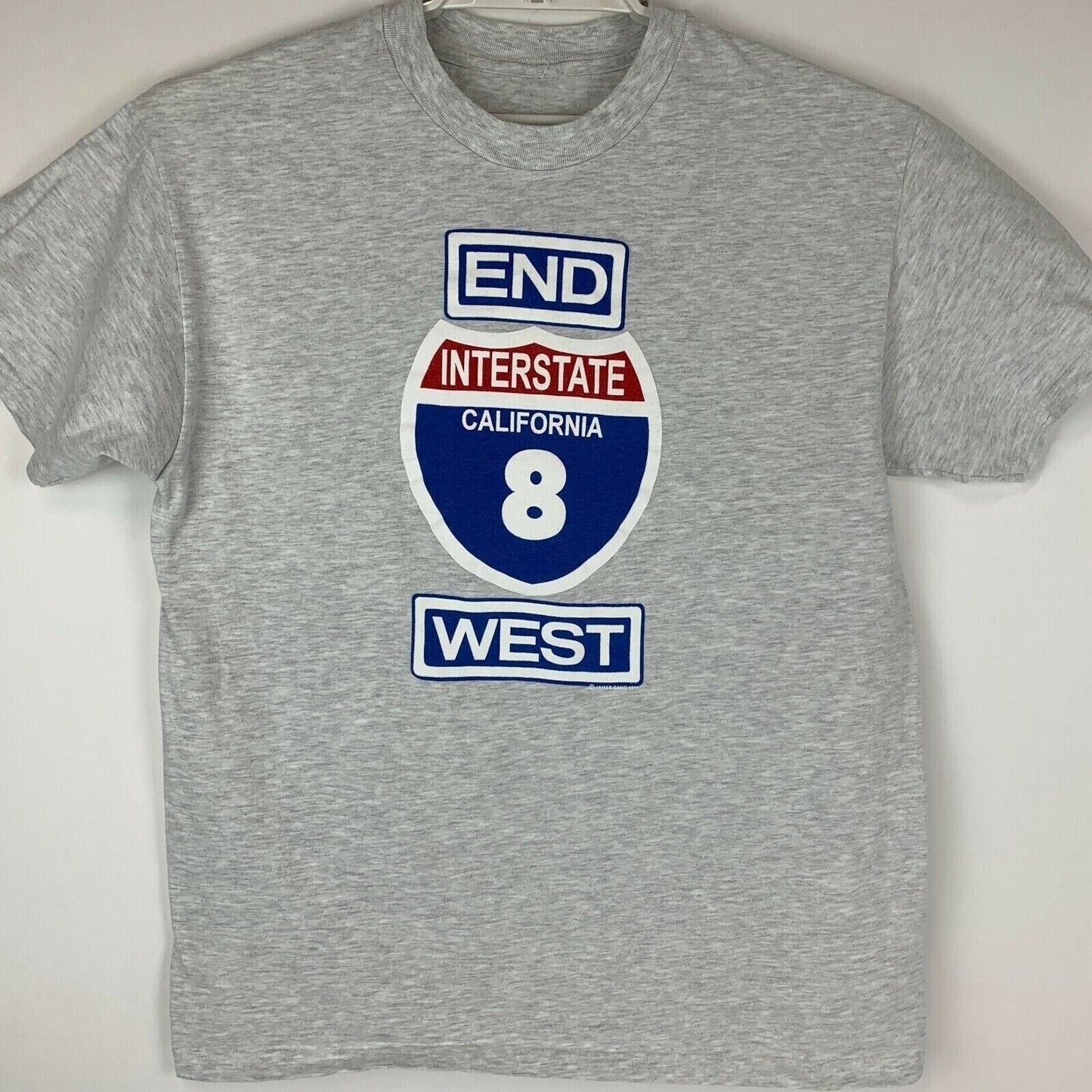 Camiseta vintage de los años 1990, 1994, final de la Interestatal 8, California, West San Diego, camiseta con gráfico gris de la autopista I-8