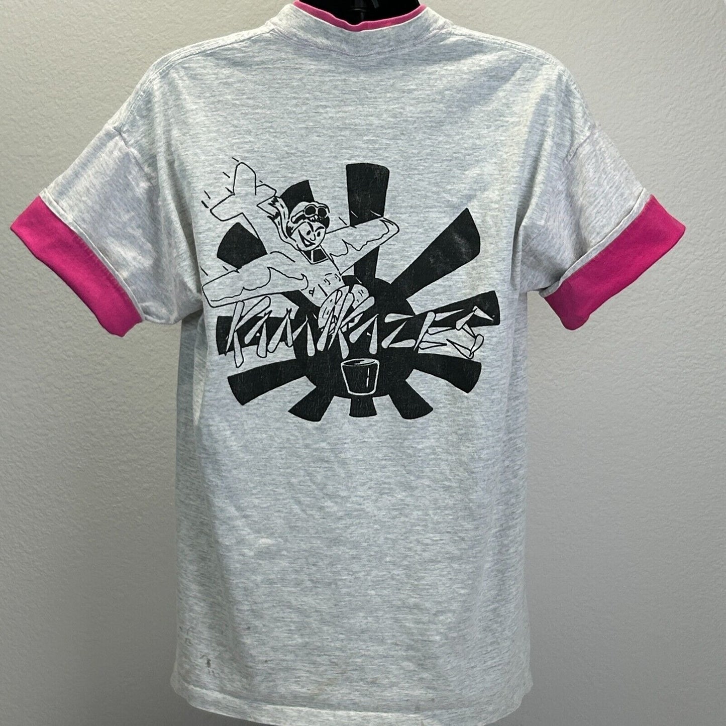 Kamikazes Alcoholic Beverage Vintage 90s T Shirt X-Large Vodka Drink Gray Pink Flip Roll Cuffs Signal Sports Single Stitch Made In USA Graphic Tee