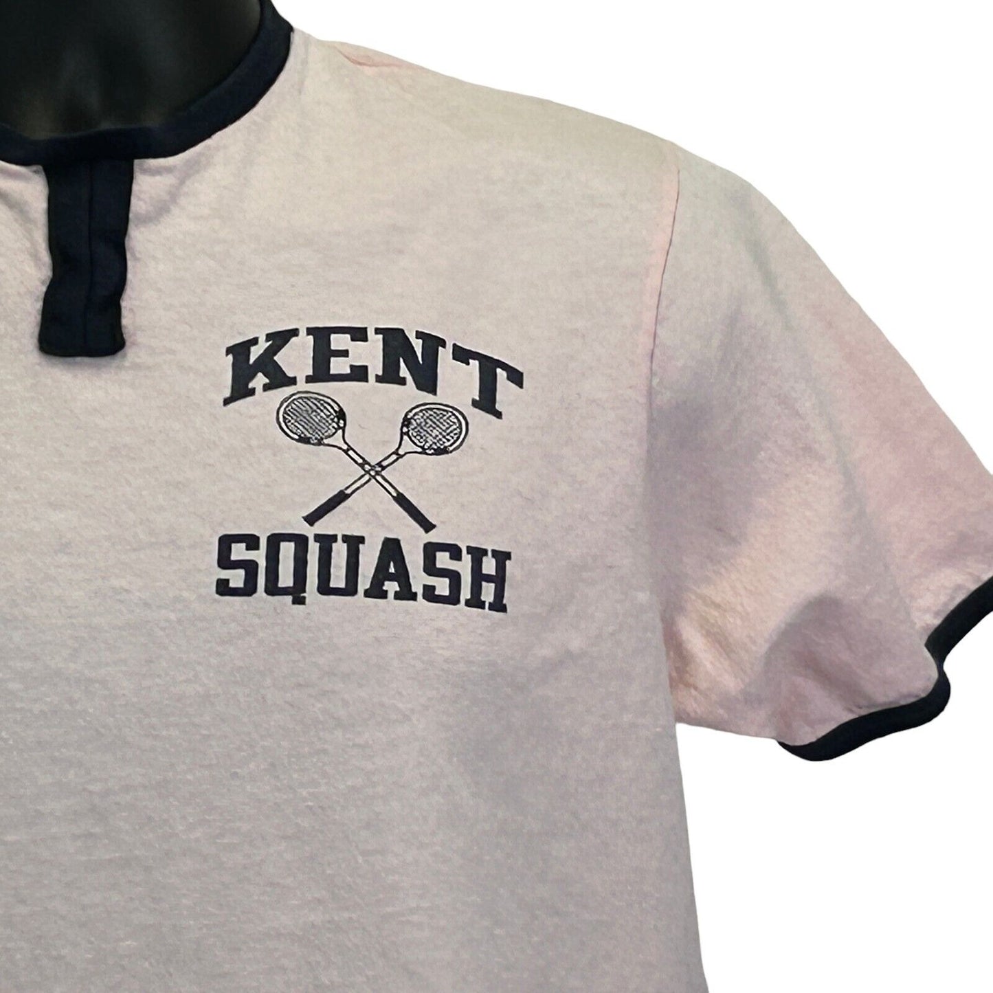 Kent Squash T Shirt Large Vintage 80s Kent School Connecticut Kent State University KSU Ohio NCAA College England Mens Pink Champion Single Stitch Made In USA Graphic Tee