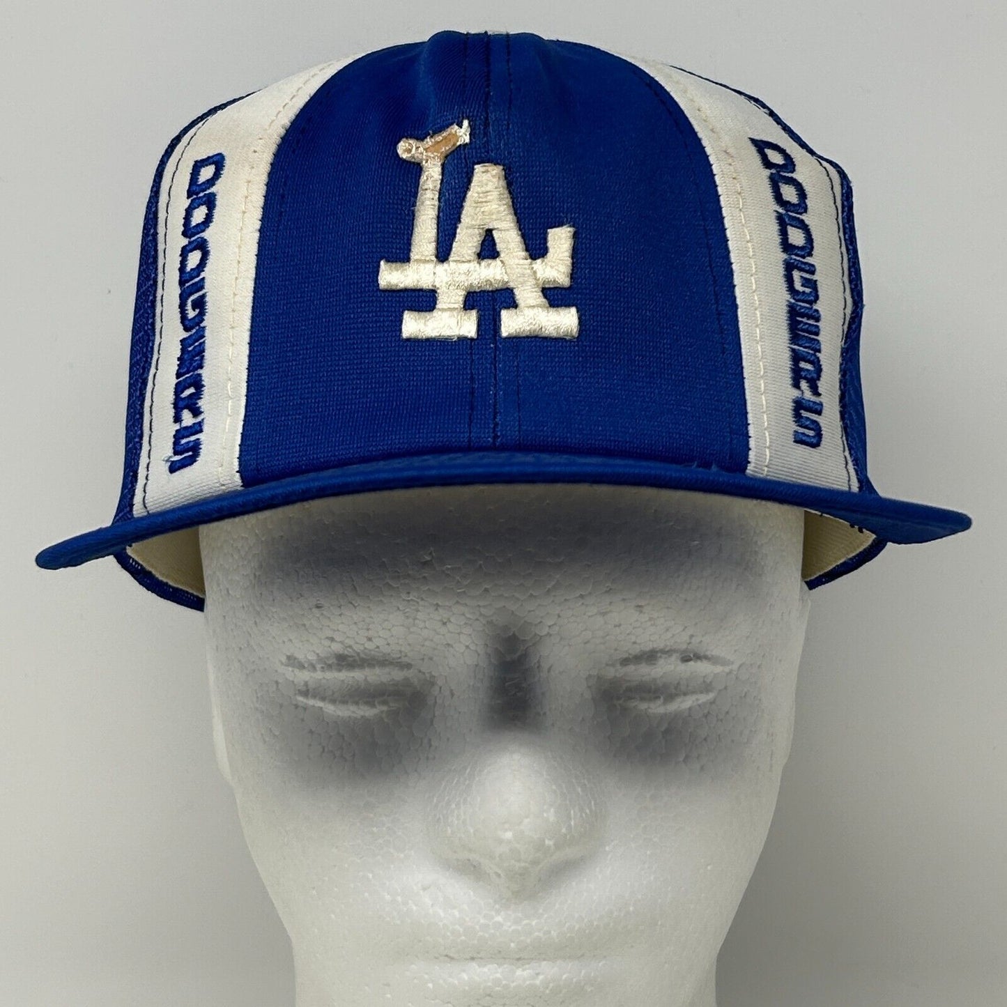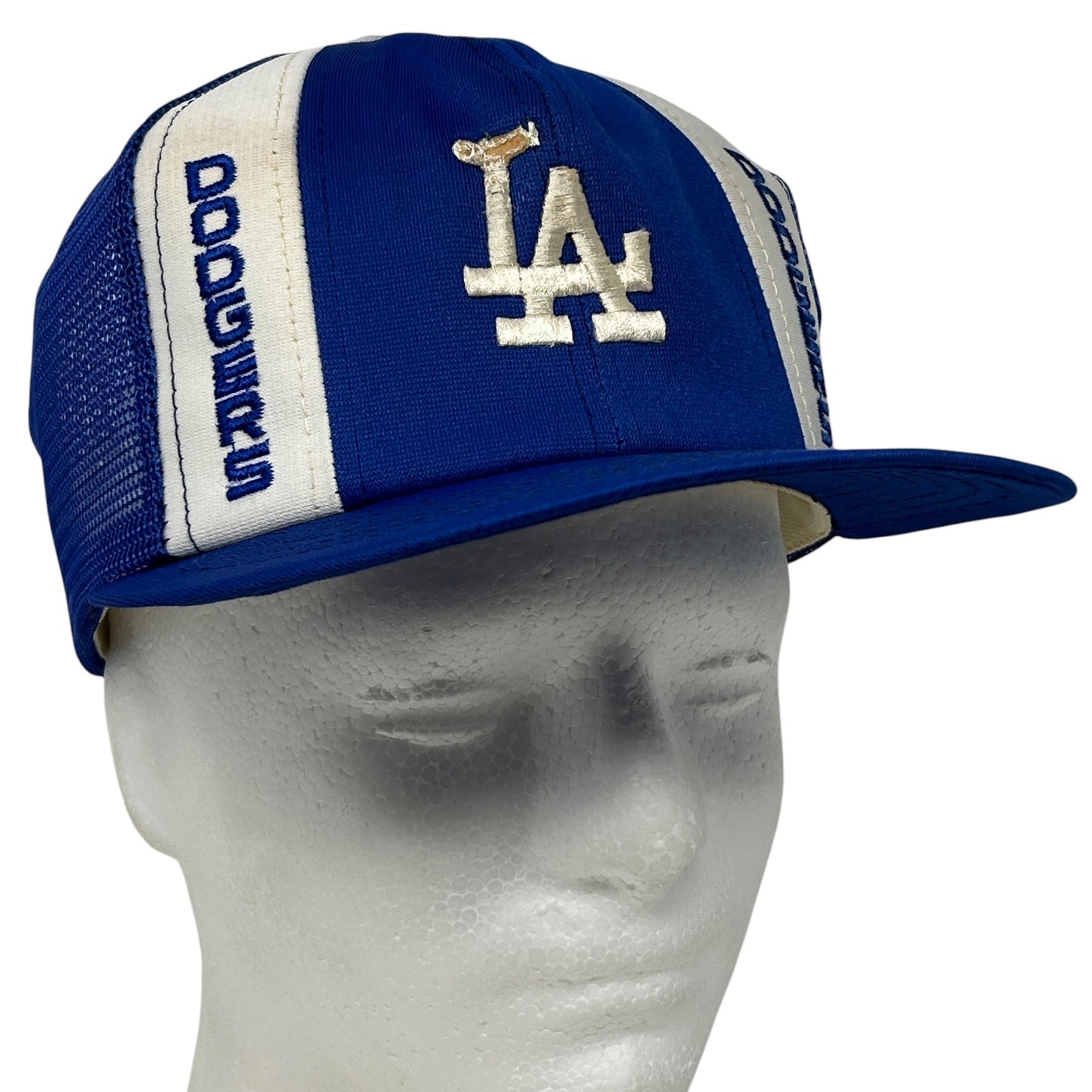 Vintage Los Angeles LA Dodgers Trucker Hat Baseball Cap MLB 80s Annco Made In USA Blue Six Panel Mesh Snapback