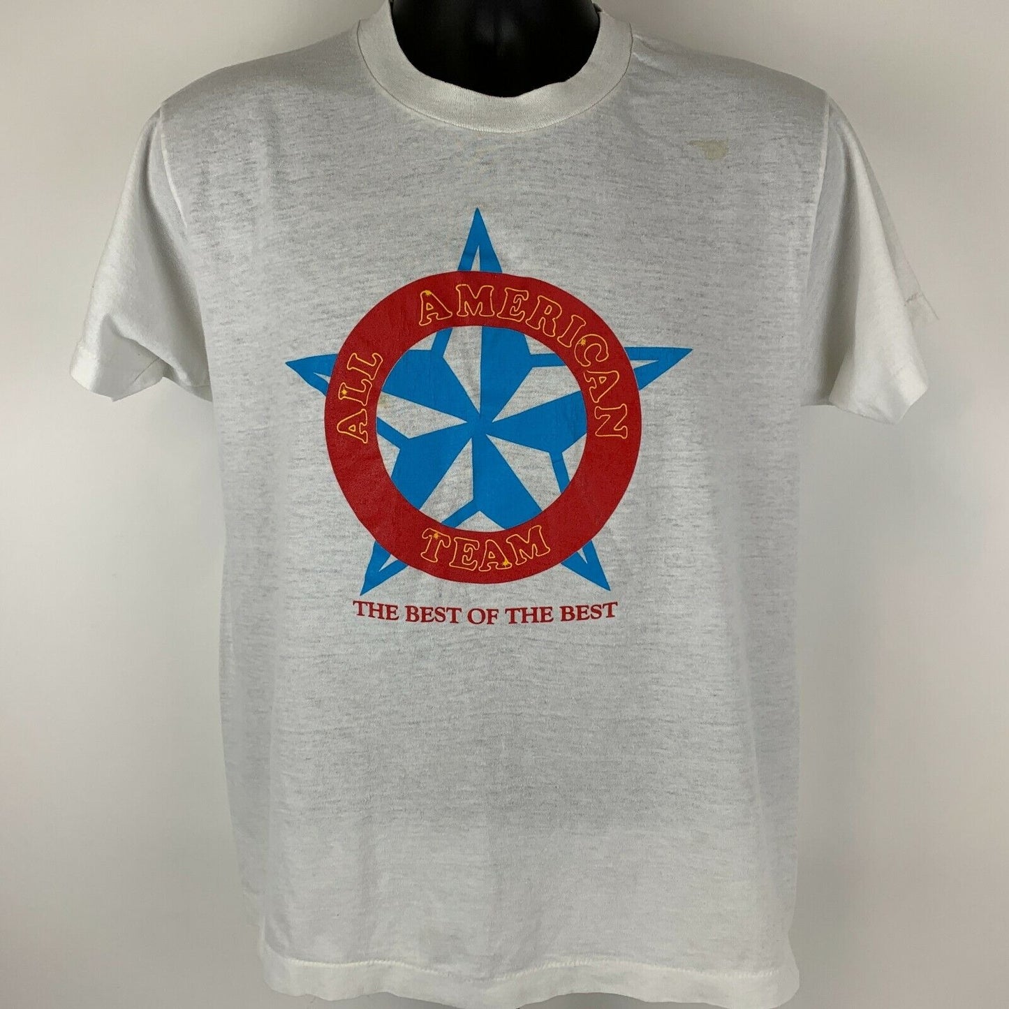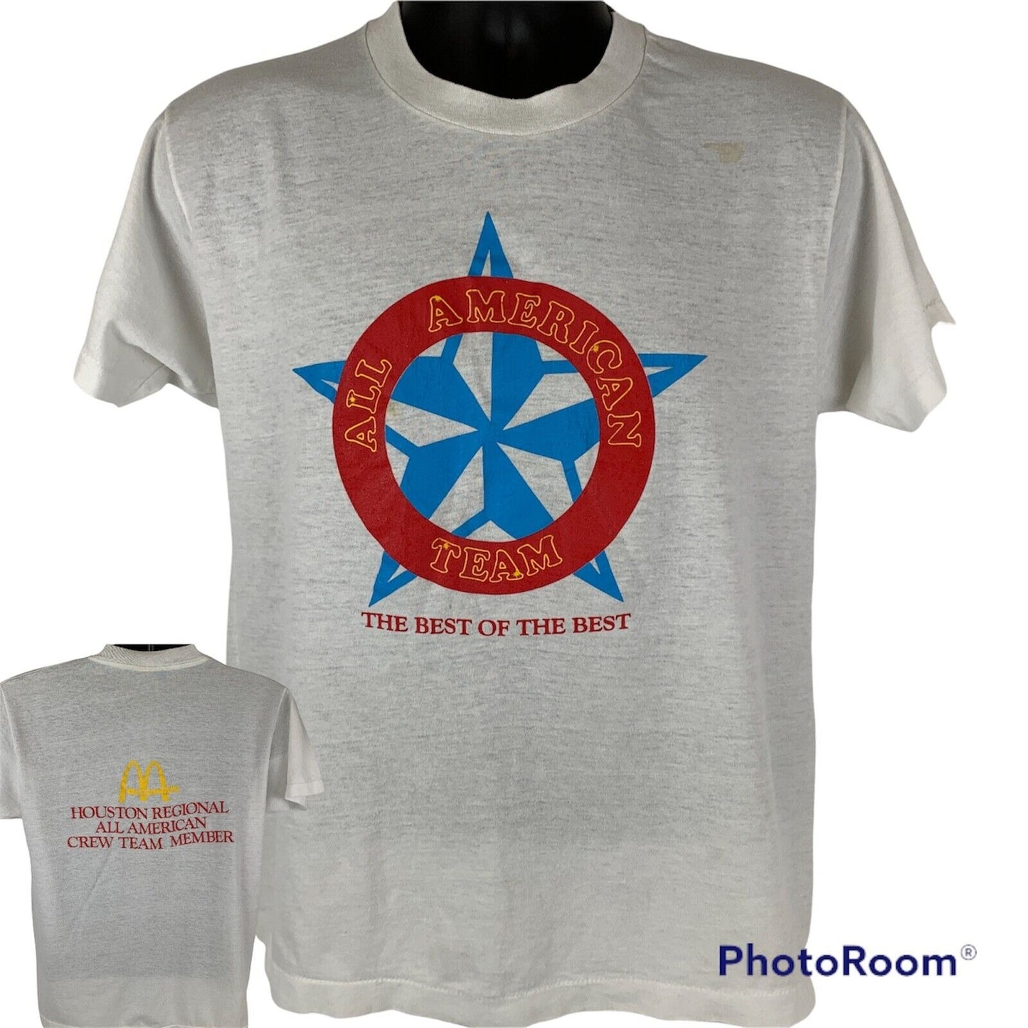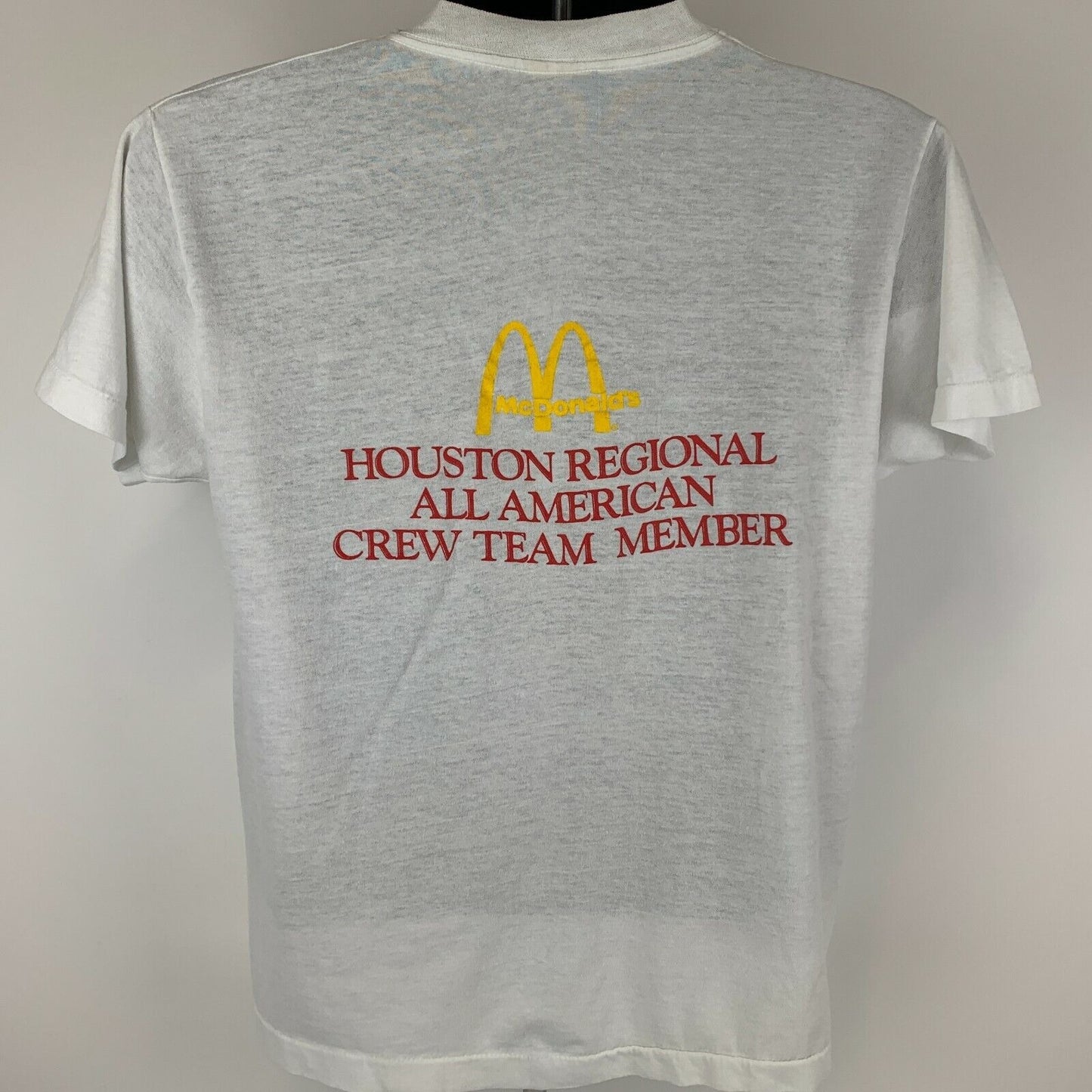 Vintage 1980s McDonald's All American Team T Shirt Houston Texas Regional All American Crew Team Member Fast Food White Screen Stars Single Stitch Made In USA Graphic Tee
