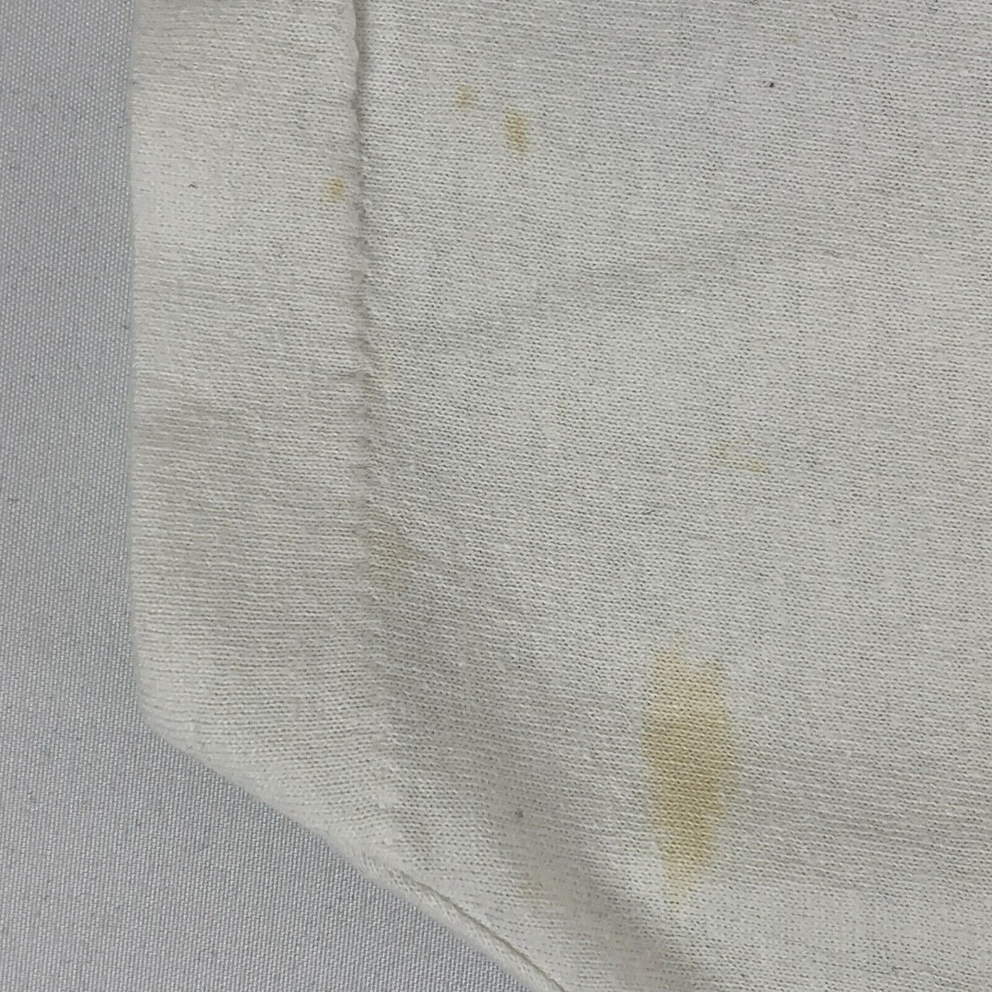 Has minor image cracking and spots. No other flaws noticed. Tag is a Large but I feel it measures more similar to a modern Medium. Check measurements to ensure fit. See photos.