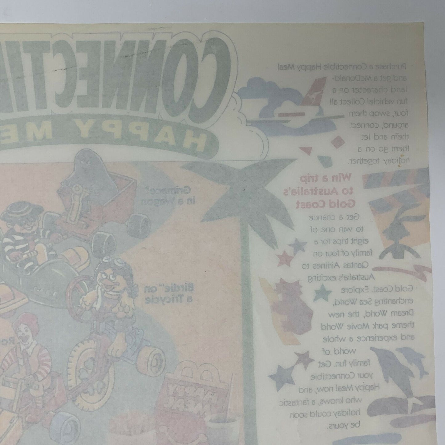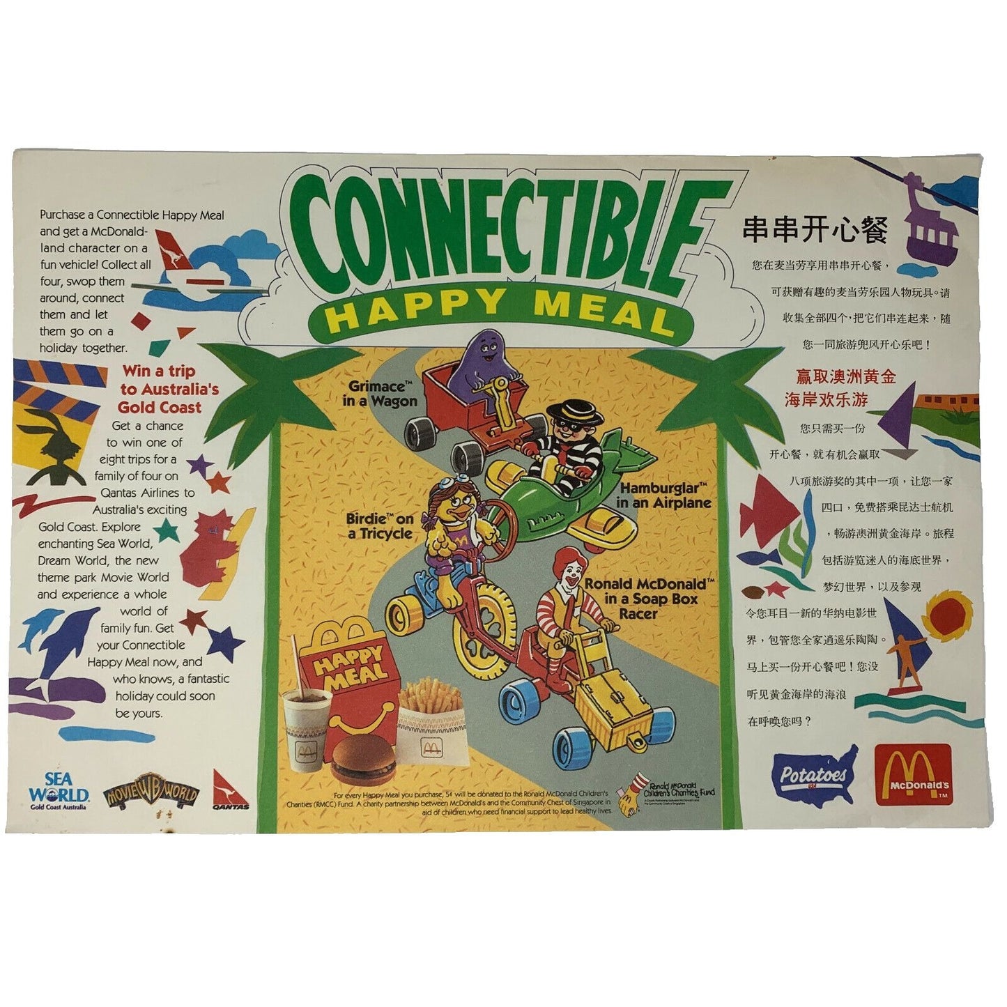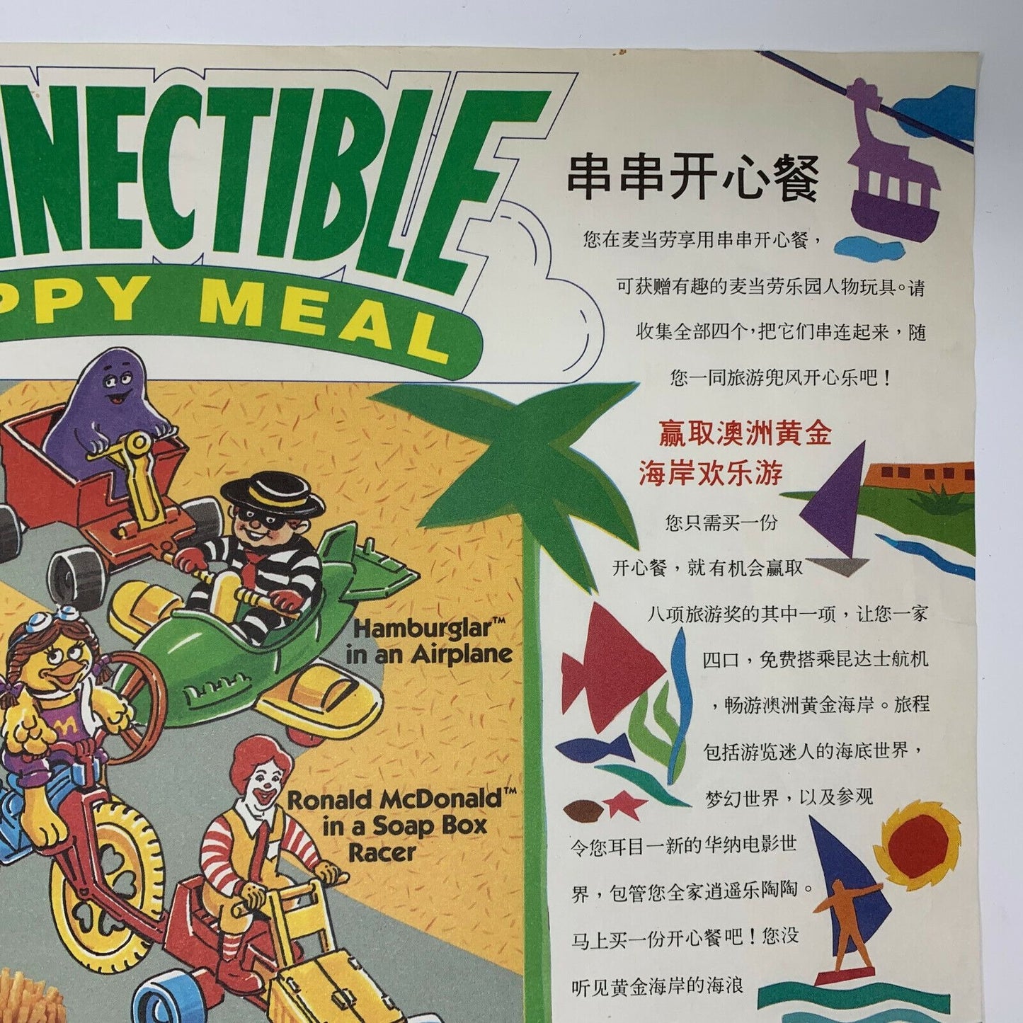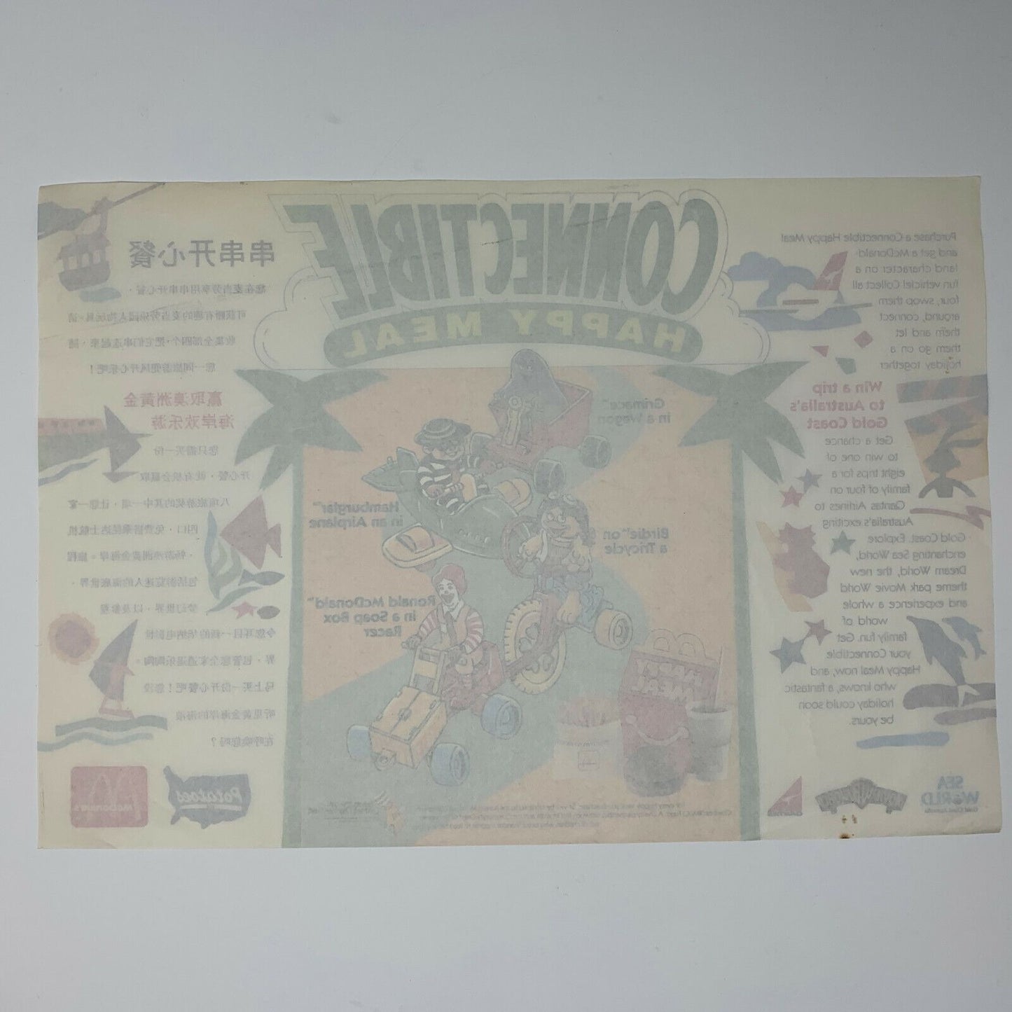 Vintage 1980s 1988 McDonald's Chinese China Connectible Happy Meal Placemat Trayliner Fast Food Ephemera