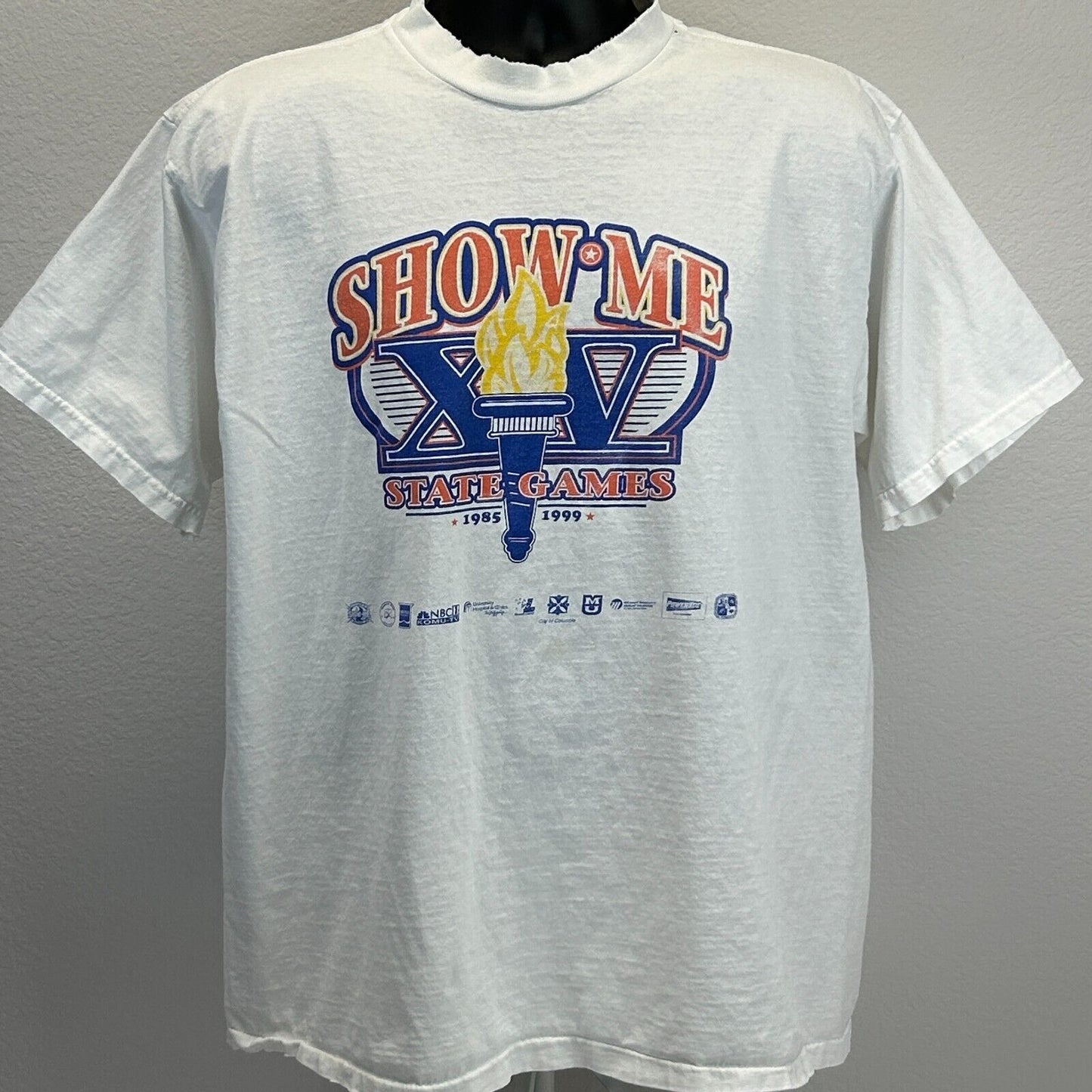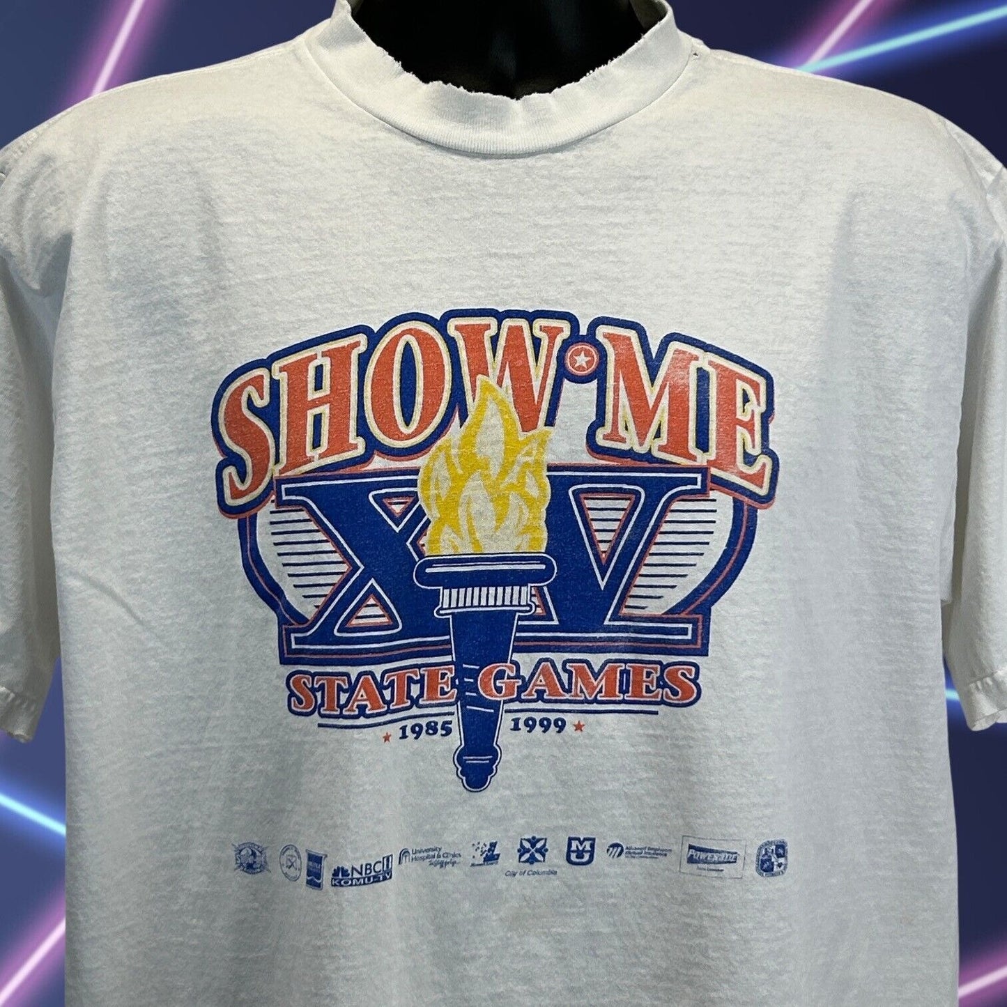 Vintage 90s Missouri Show Me State Games XV T Shirt Sports White Mens XL X-Large