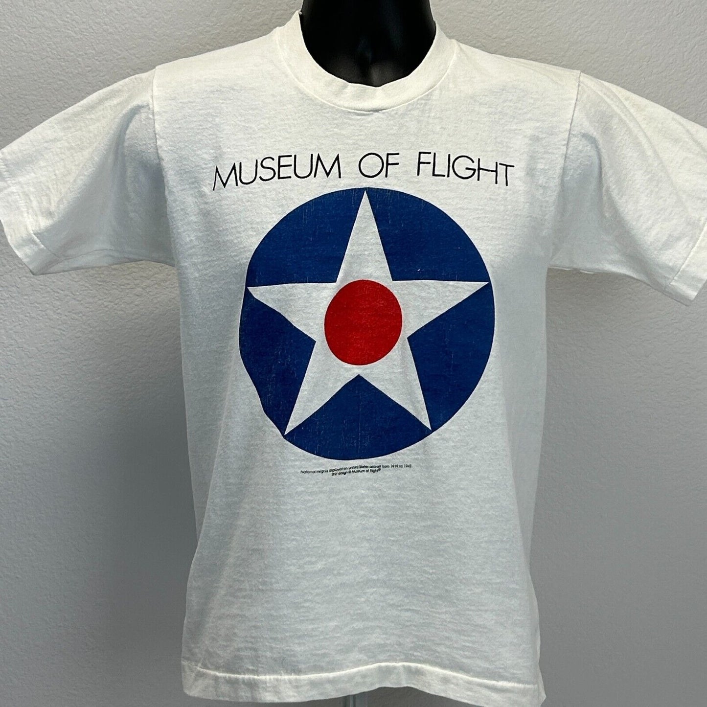 Vintage Museum of Flight USAF T Shirt Mens Small Seattle United States US Air Force Star National Insignia Military WWI World War I First World War Great War 80s White Fruit of the Loom Single Stitch Made In USA Graphic Tee