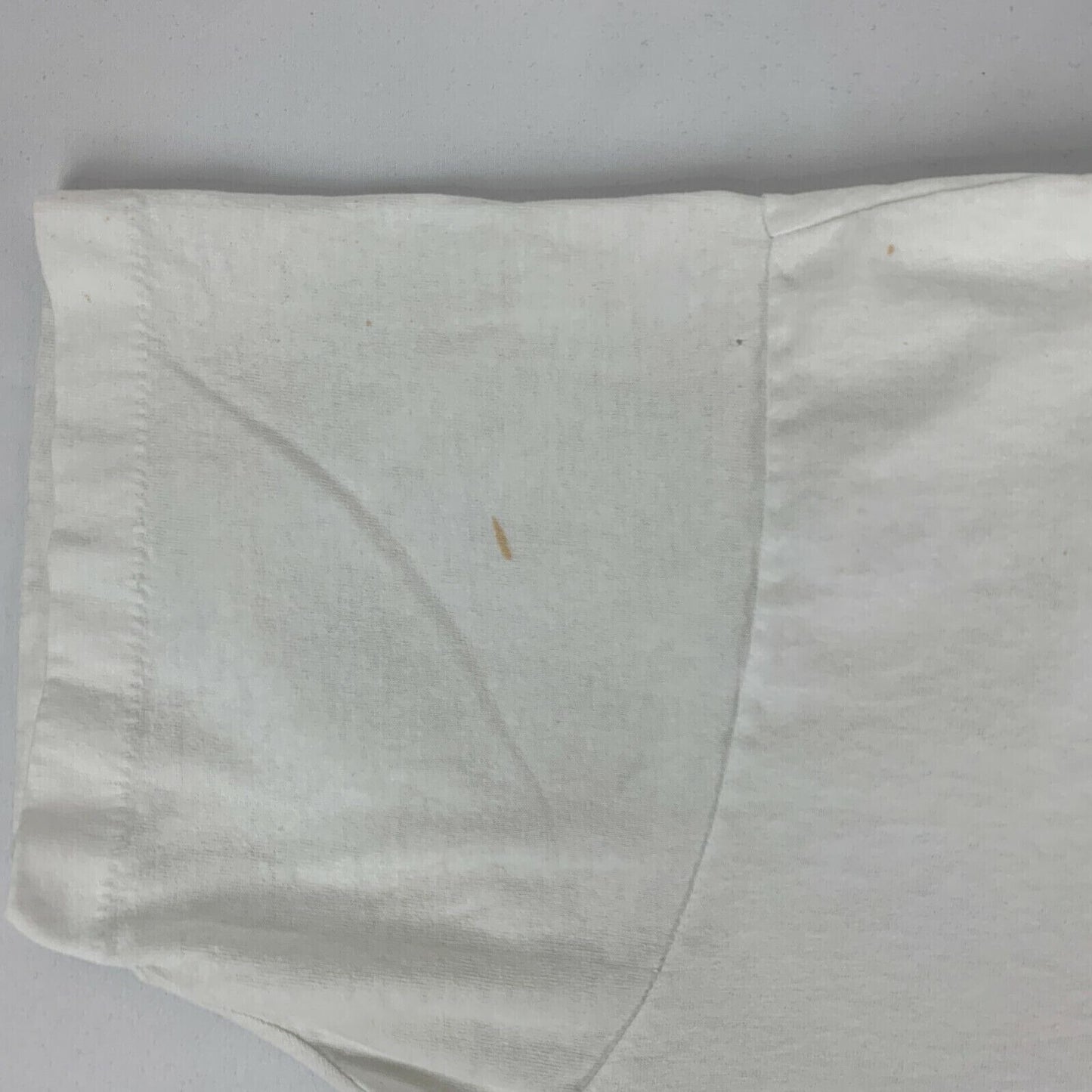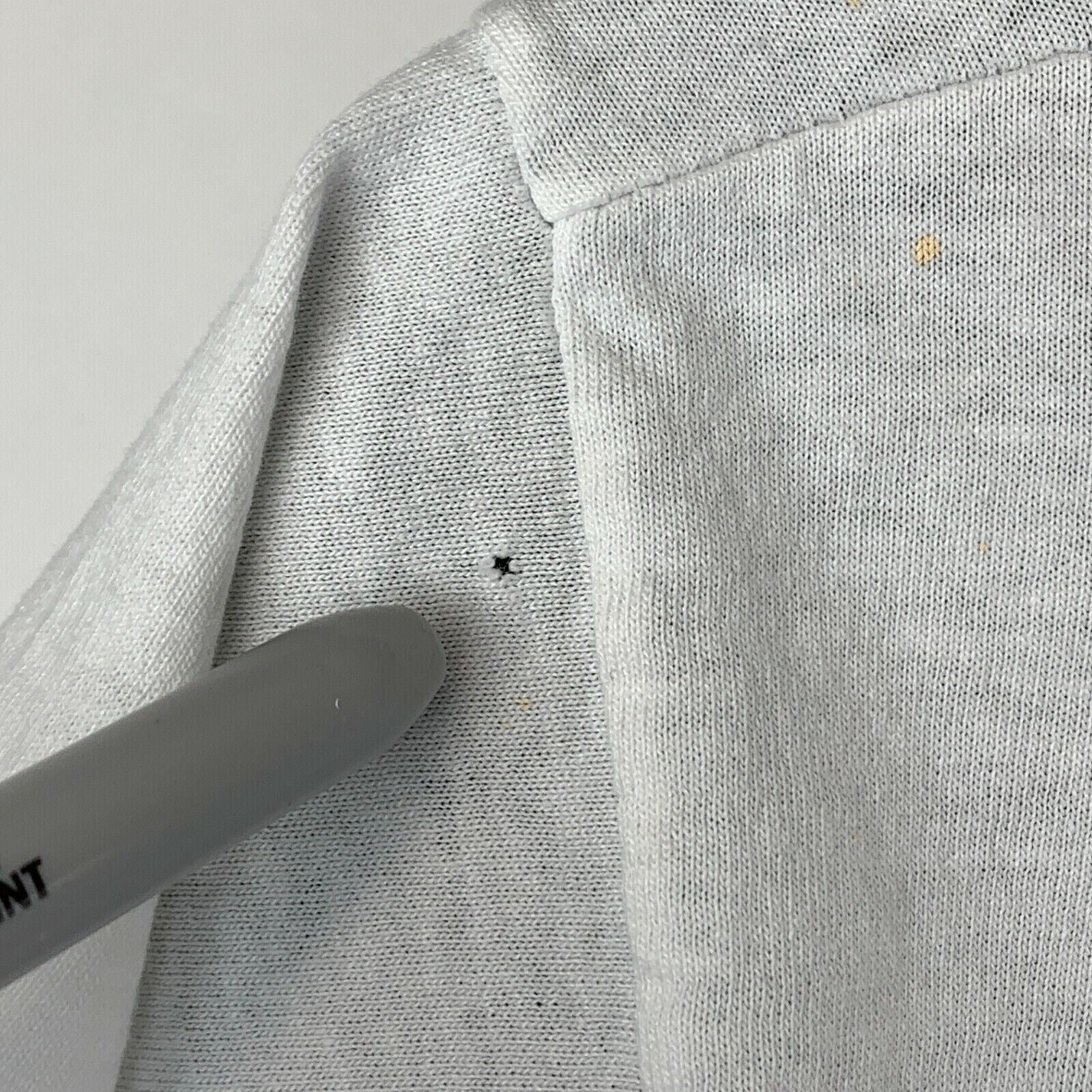 Has a small pinhole on one shoulder, paint spots, and other spots. No other flaws noticed. Tag is a Large but I feel it measures more similar to a modern Medium. Check measurements to ensure fit. See photos.