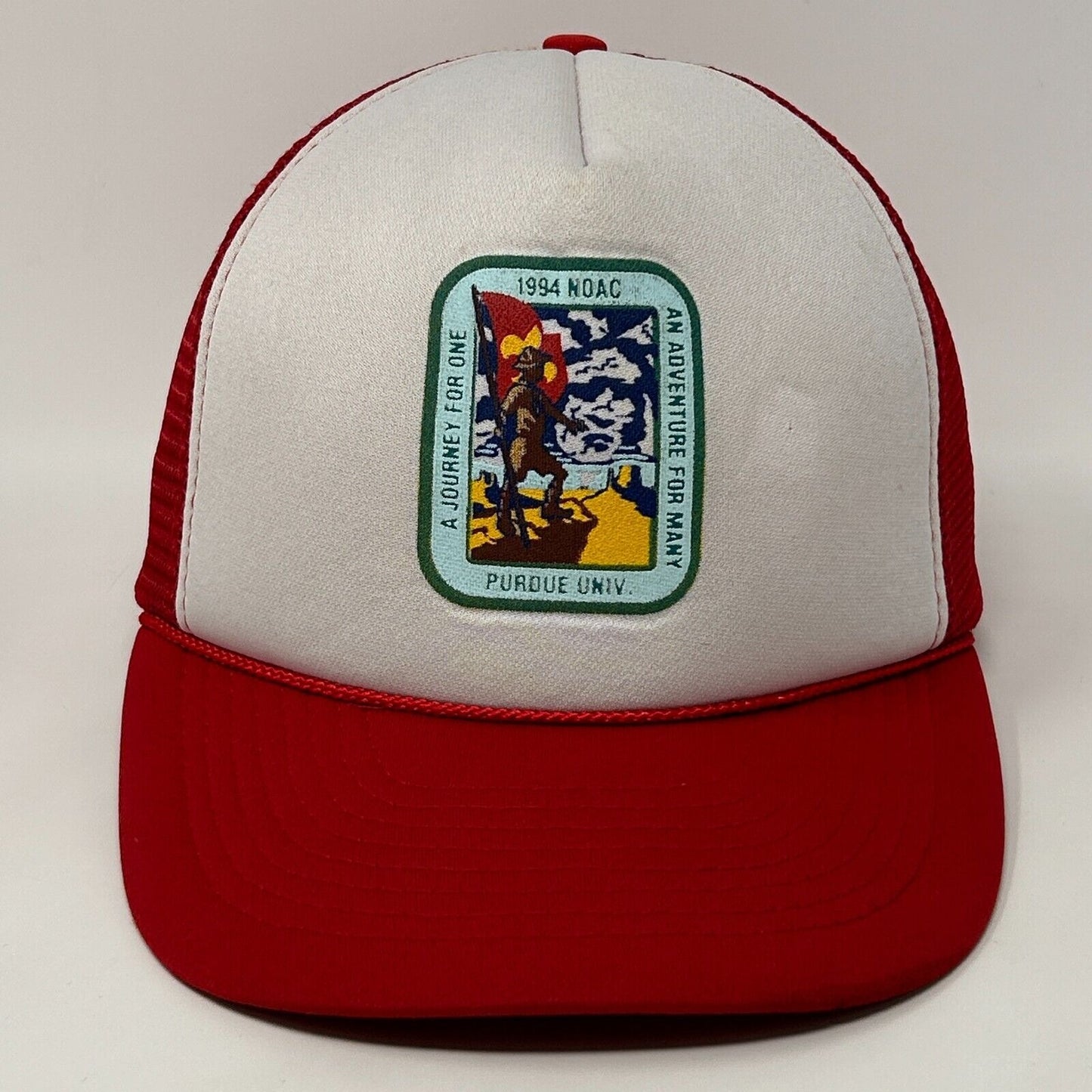 Vintage NOAC Purdue University Trucker Hat Baseball Cap National Order of the Arrow Conference BSA Boy Scouts of America Scouting 1994 90s Red Mohr's Five Panel A-Frame Mesh Snapback