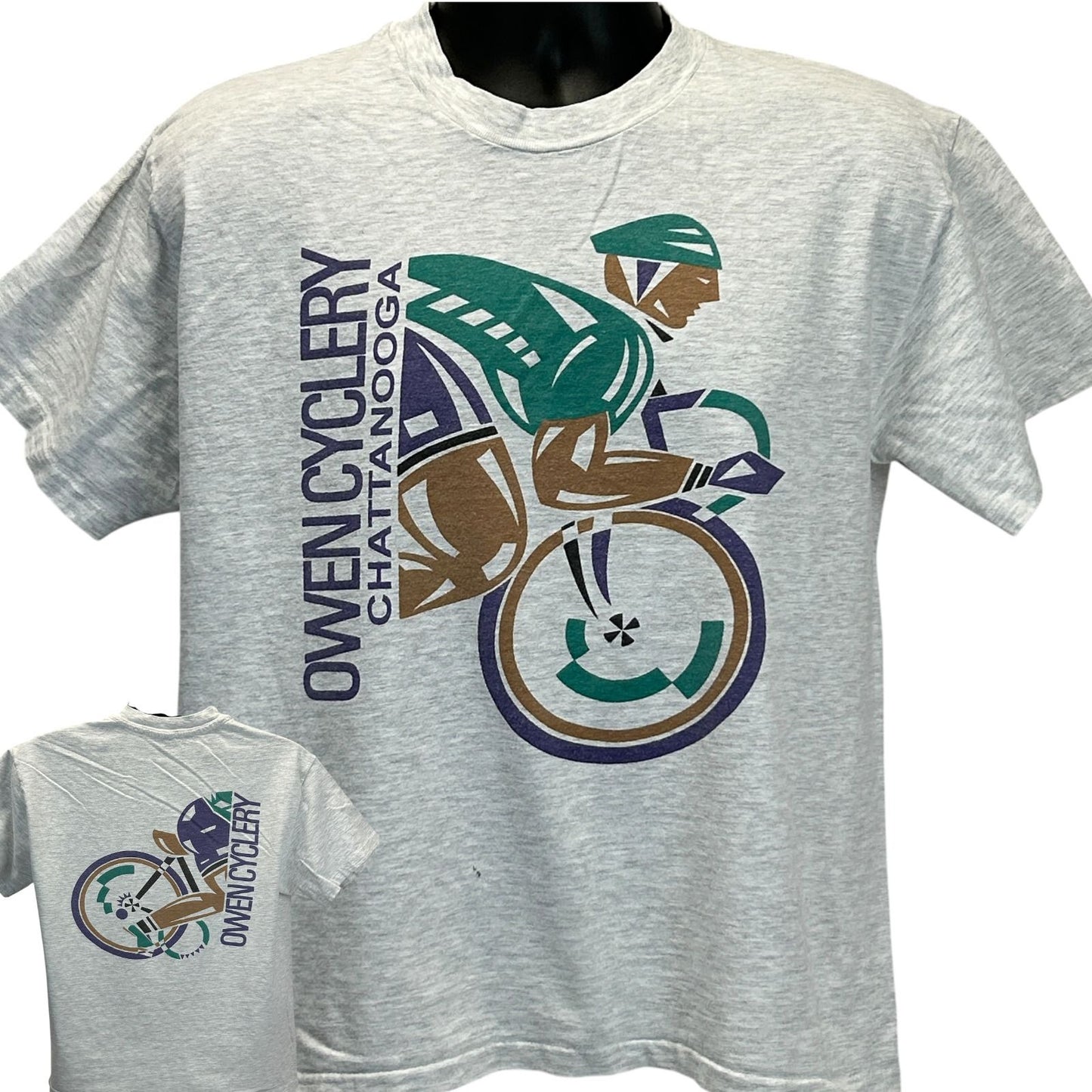 Vintage Owen Cyclery Chattanooga T Shirt Mens Medium Bicycle Bicycling Bicycler Cycling Cycler Tennessee 90s Gray Hanes Single Stitch Made In USA Graphic Tee