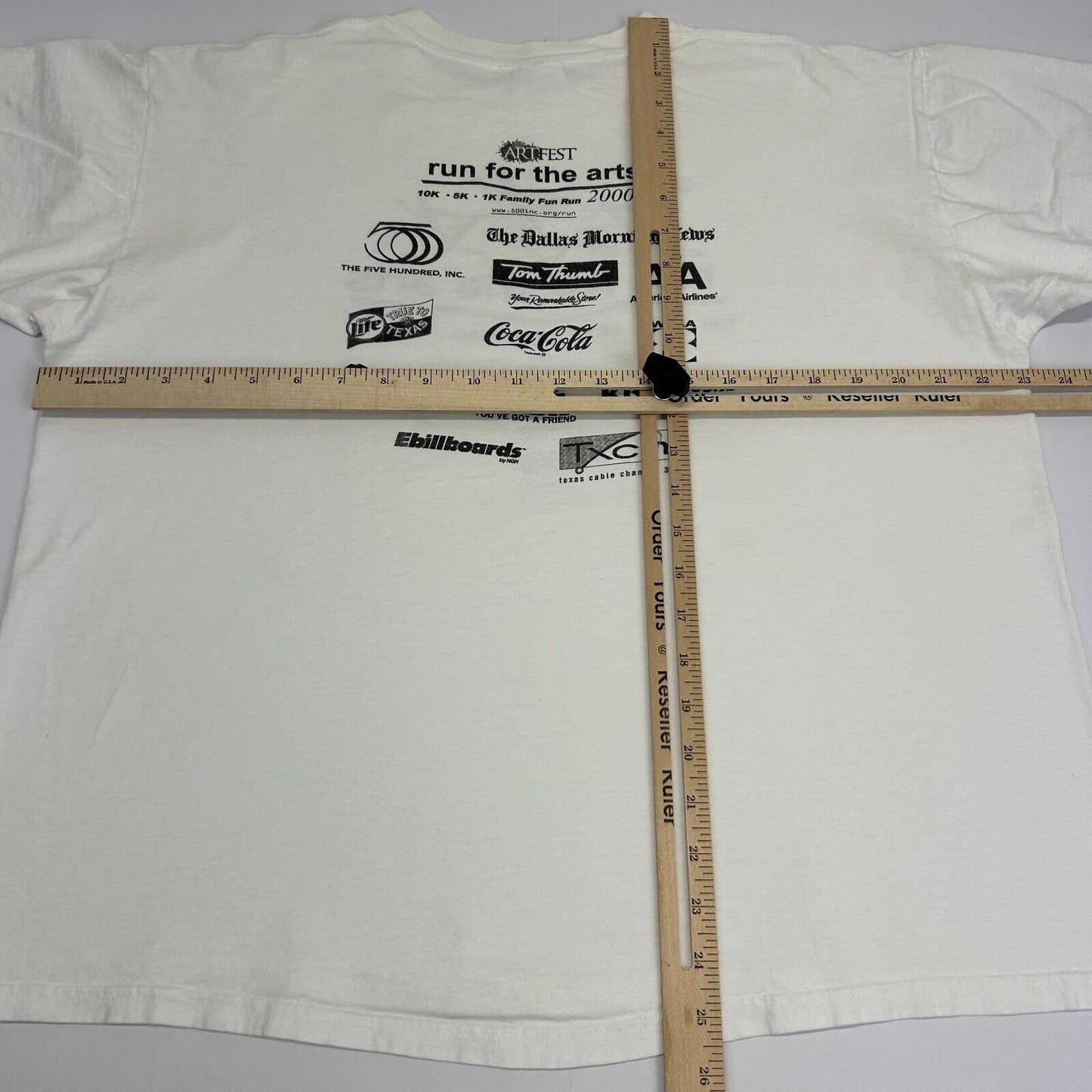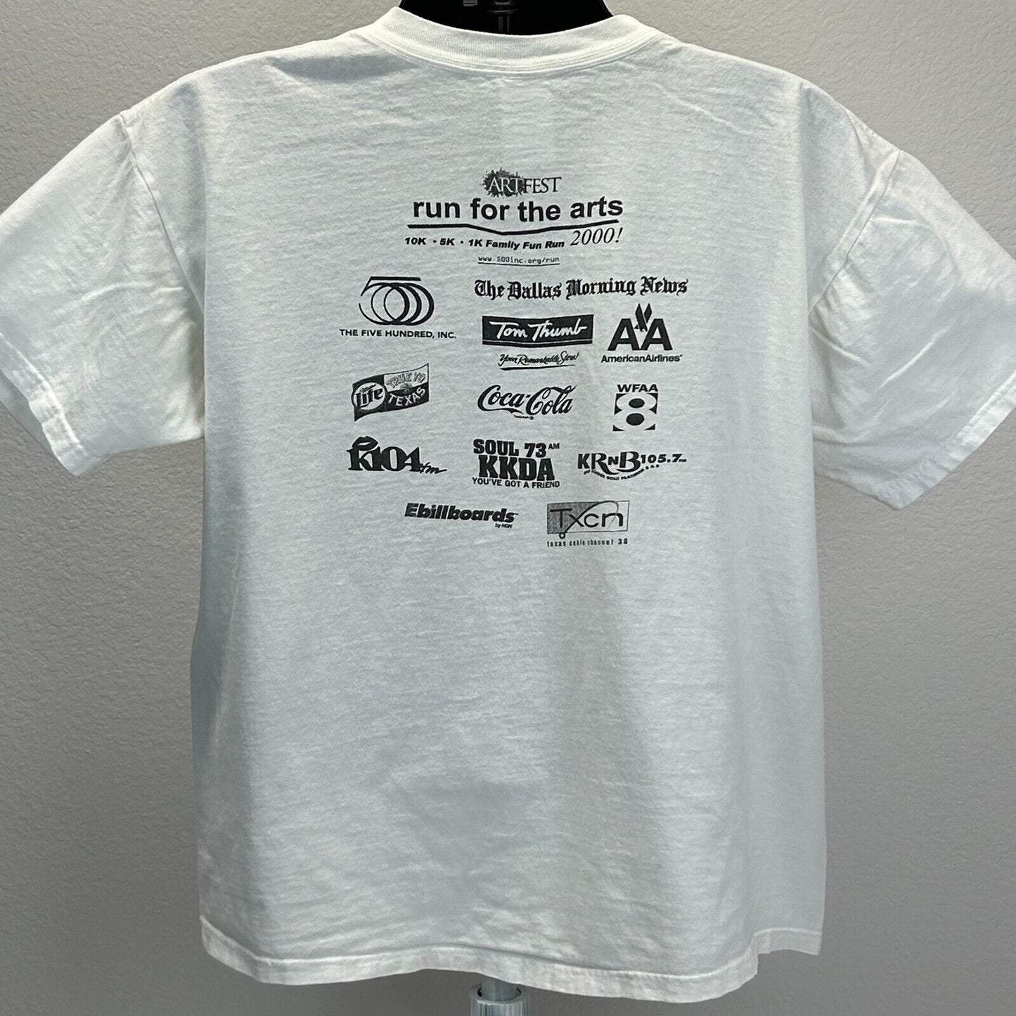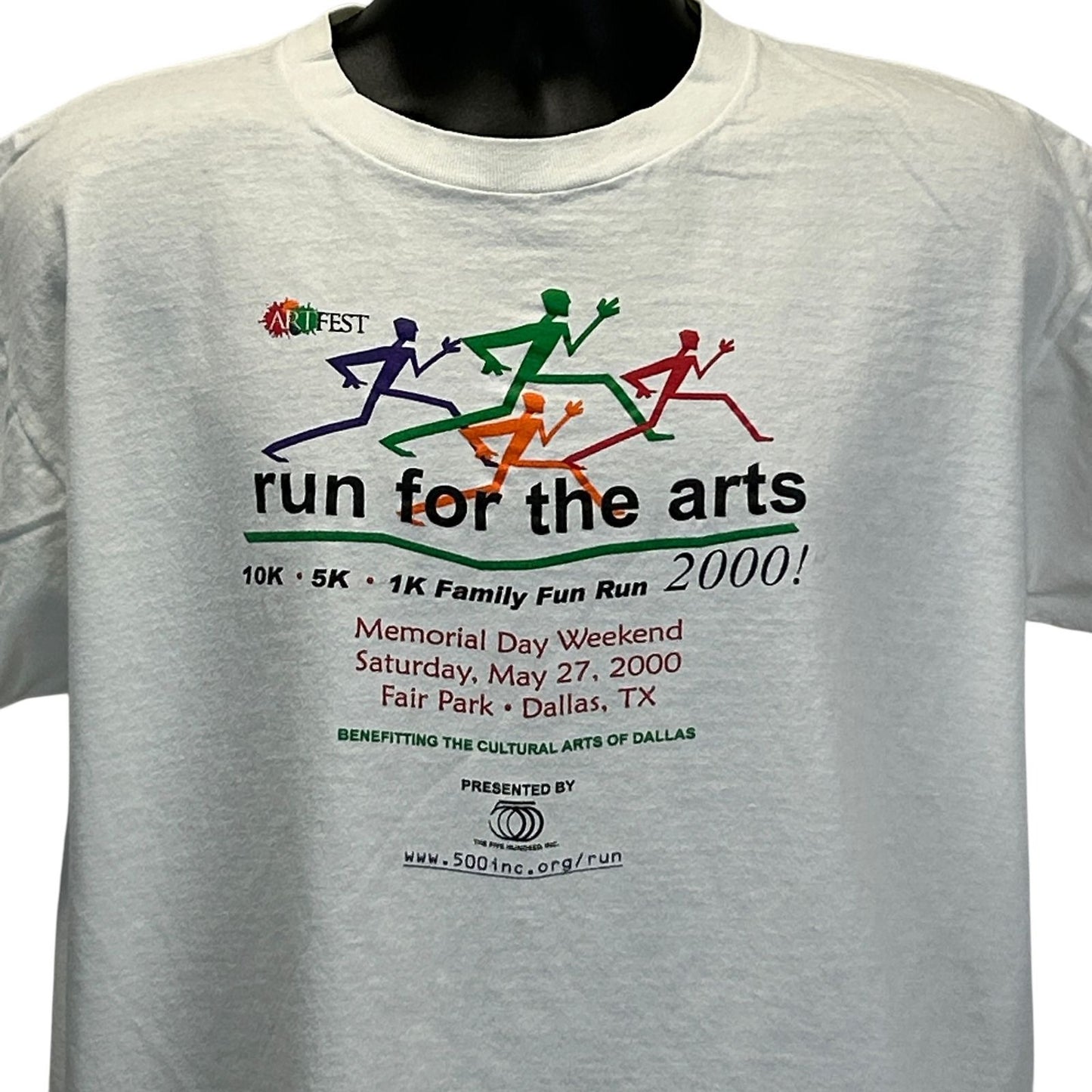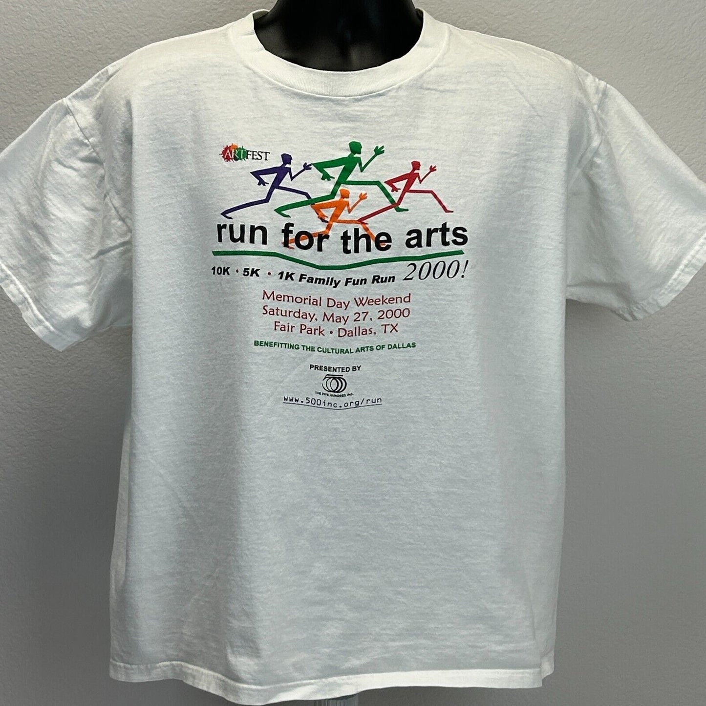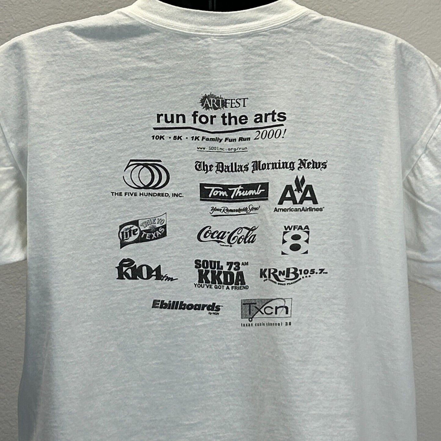 Vintage Run For The Arts T Shirt Mens X-Large 2000 Dallas Texas Marathon Art Fest Festival Runner Running Y2Ks 2000s White Fruit of the Loom Graphic Tee