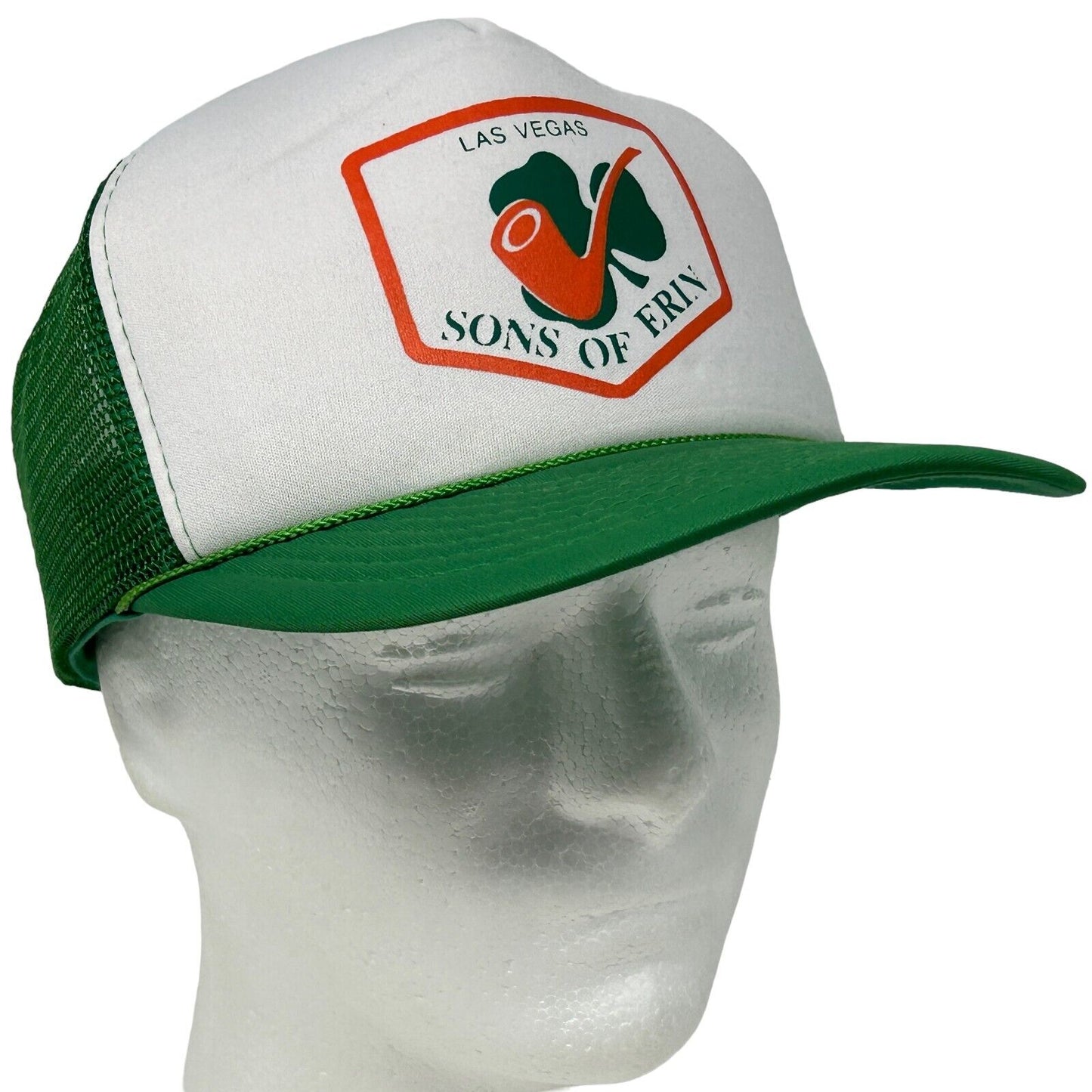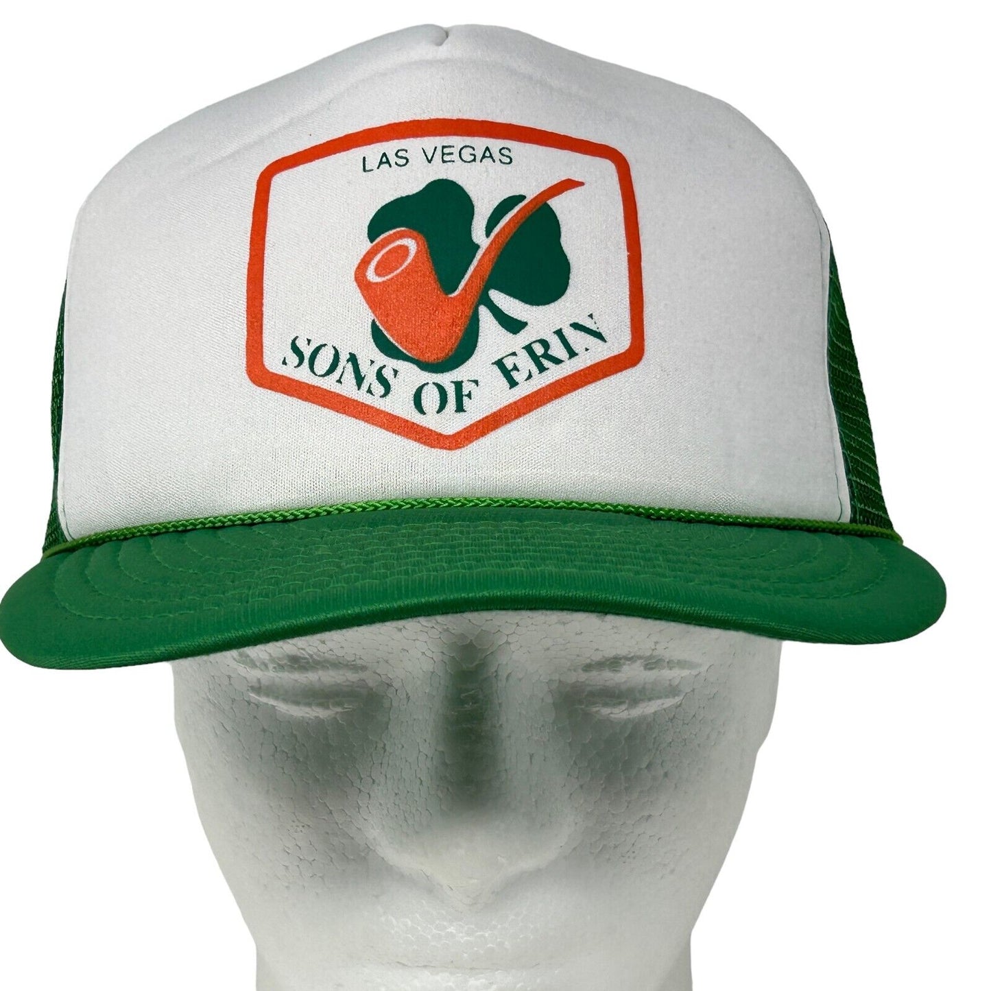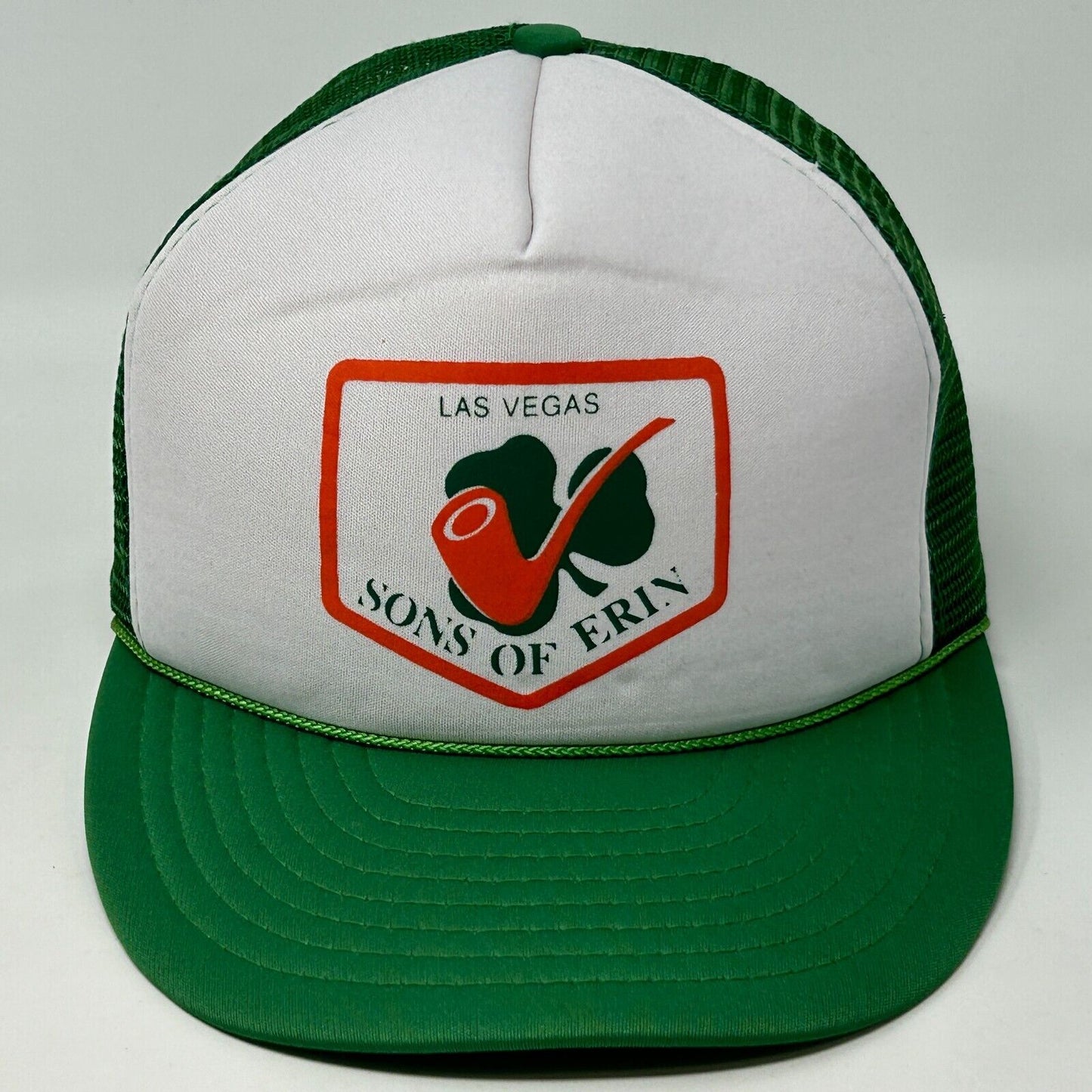 Vintage Sons of Erin Las Vegas Trucker Hat Baseball Cap 90s Green Irish Snapback