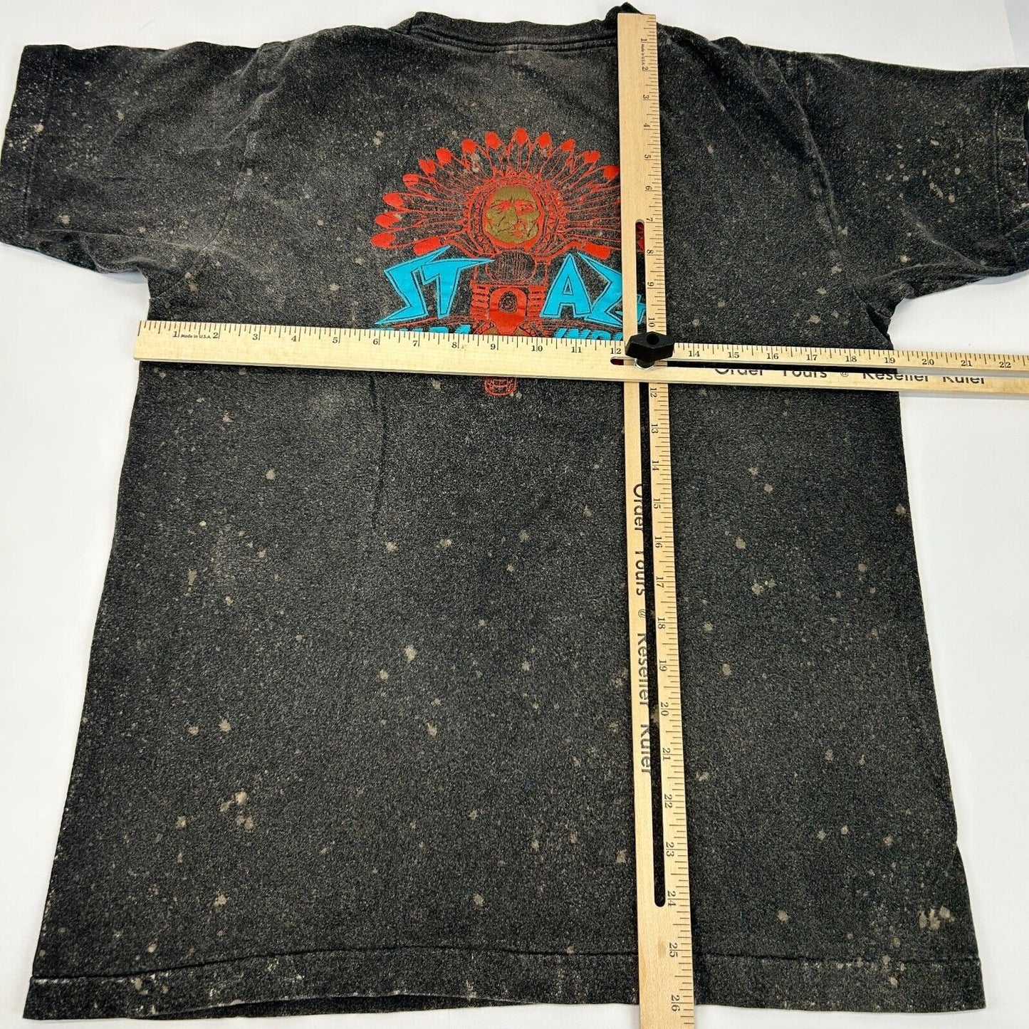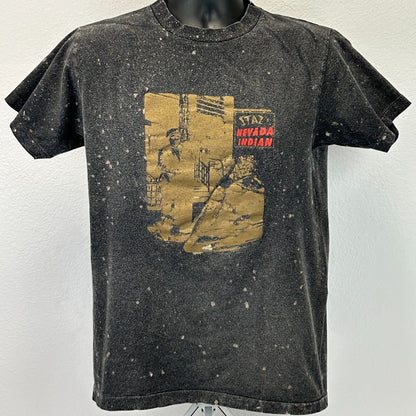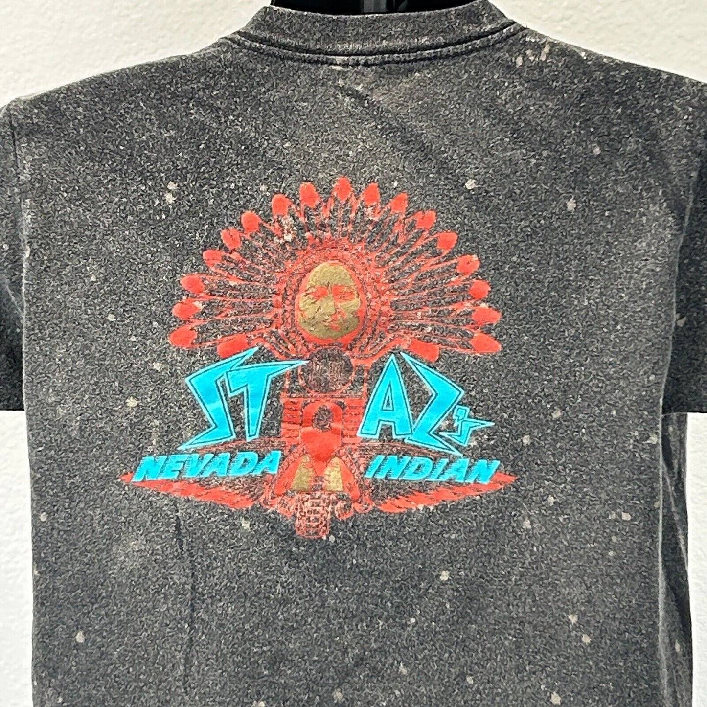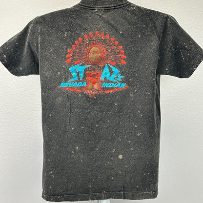 Vintage 1990s Staz's Nevada Indian Motorcycles Dealer T Shirt Biker Black Bleach Spotted Tie Dye Caribbean Dream Single Stitch Graphic Tee