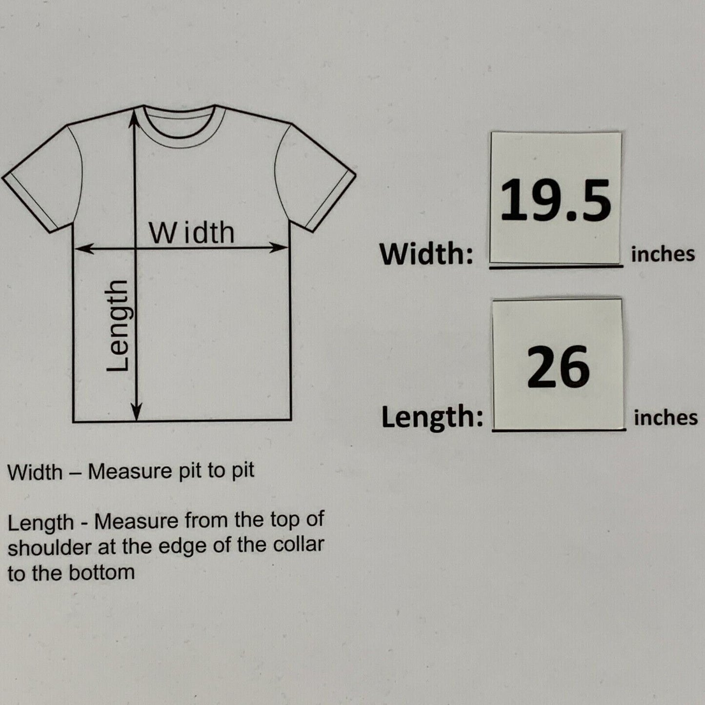 Largo 26" - Mida desde la parte superior del hombro, en el borde del cuello, hasta la parte inferior de la camisa.