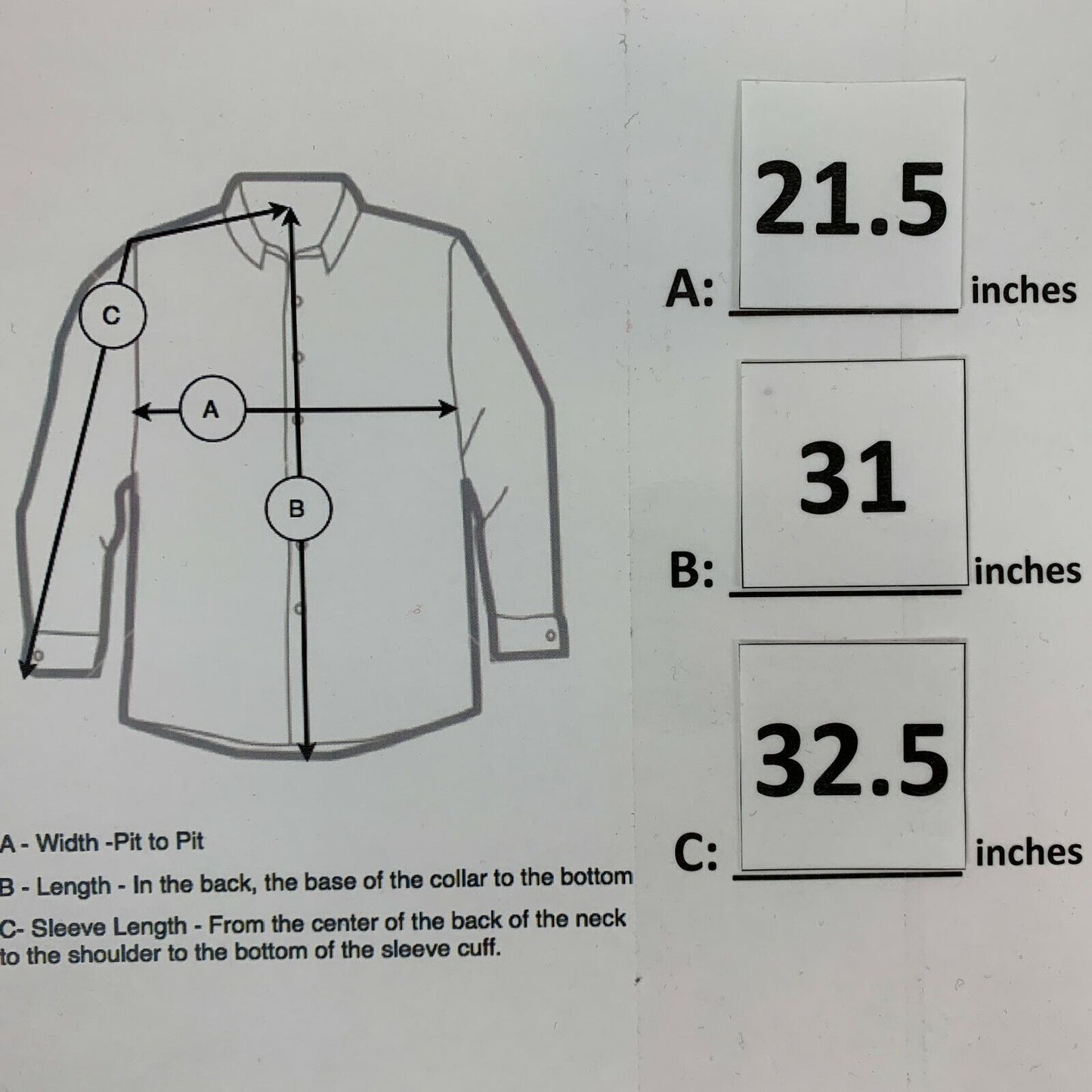 Sleeve Length 32.5" - From the center of the back of the neck to the shoulder to the bottom of the sleeve