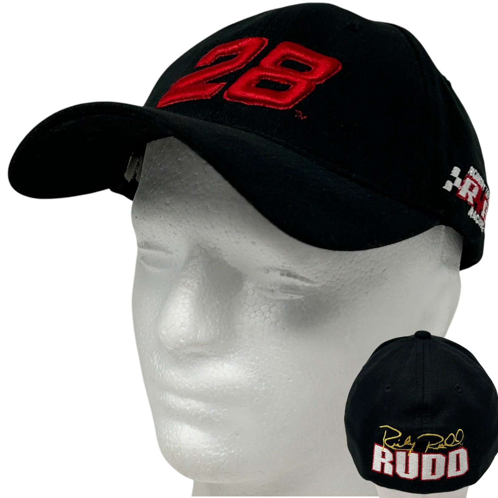 Vintage Y2Ks 2000s NASCAR Ricky Rudd 28 Hat Baseball Cap Flex Fitted S/M RYR Robert Yates Racing Motorsports Auto Racing Chase Authentics Realfit 6 Panel Black