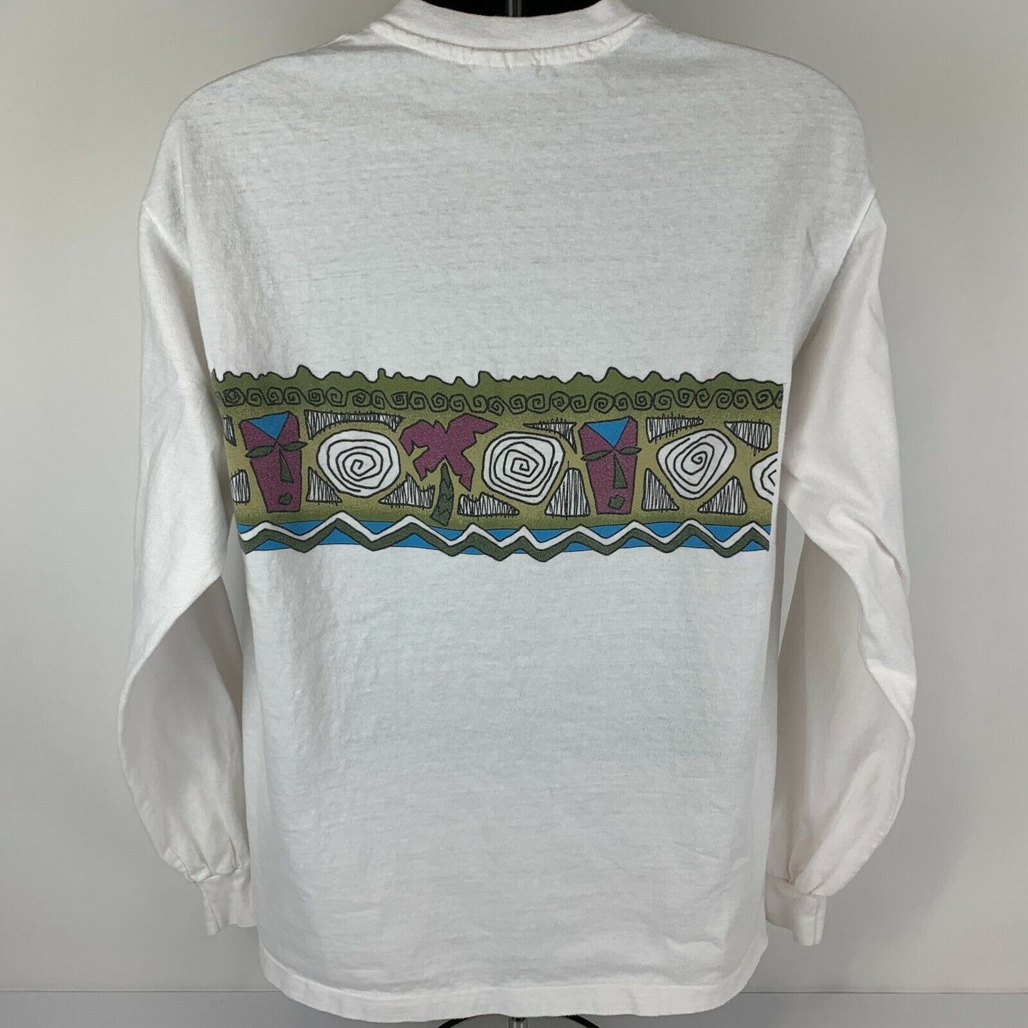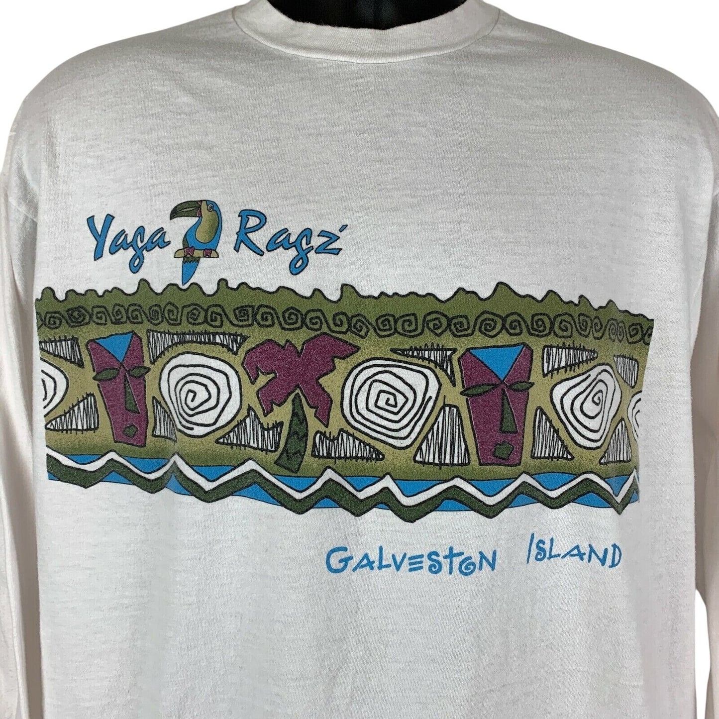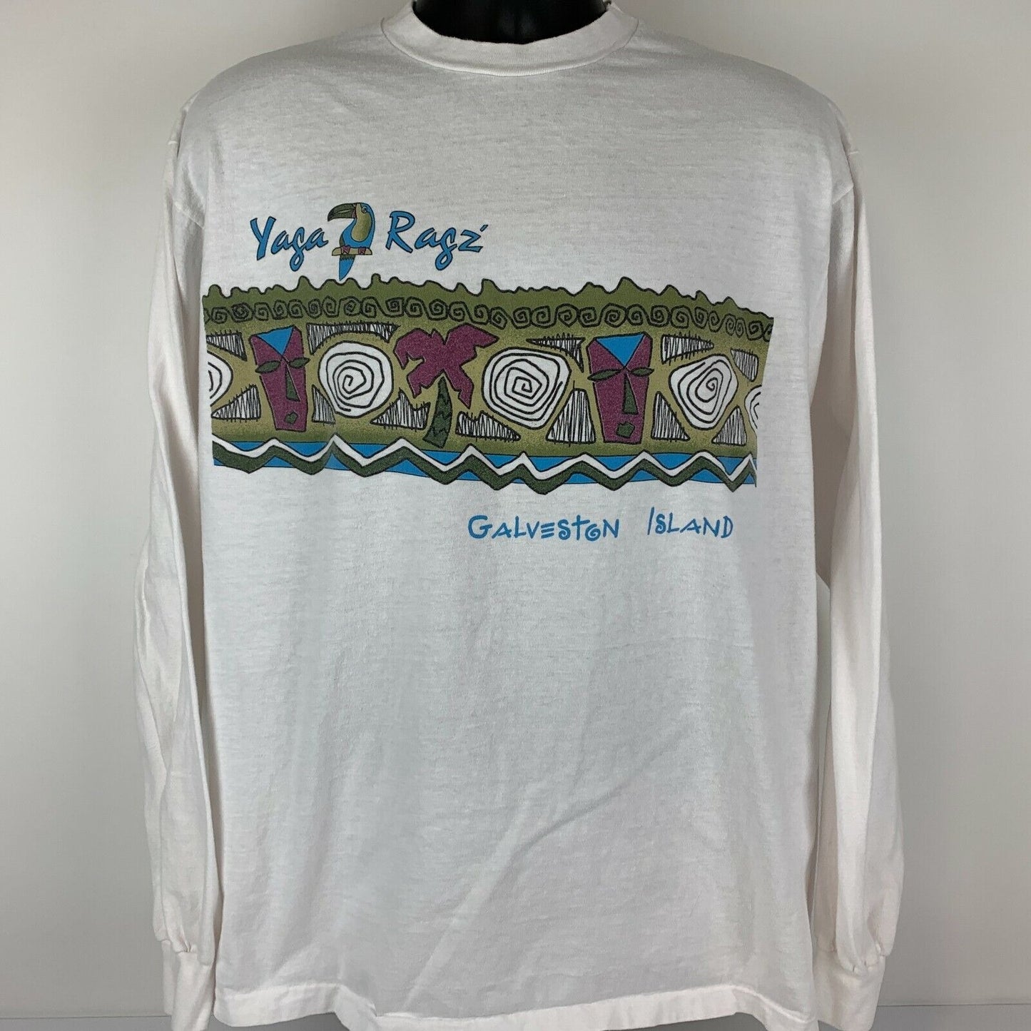Vintage 1980s Yaga Ragz Galveston Island T Shirt Texas Jamaican Rastafari Tiki White Long Sleeve Hanes Single Stitch Made In USA Graphic Tee