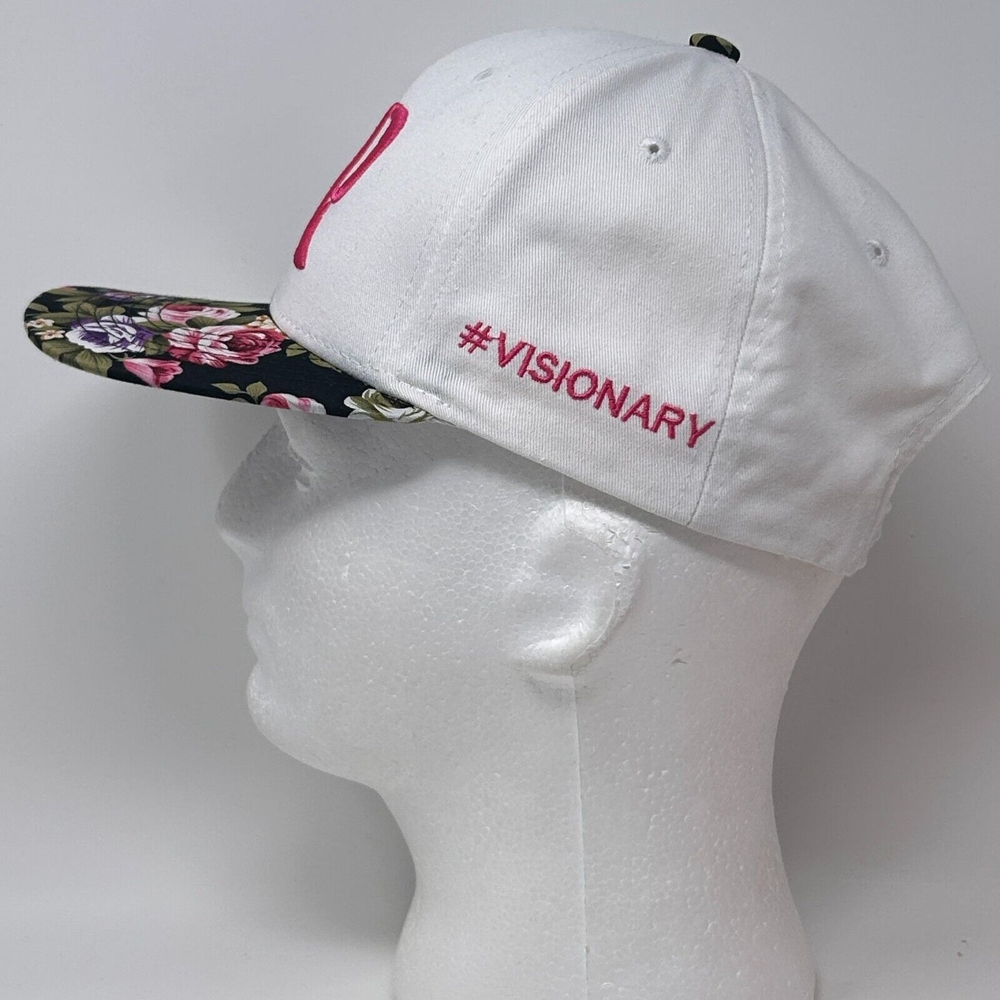 Visionary Baseball Hat Cap #Visionary Hashtag Visionary Floral Flowers Three D's Six Panel Snapback White