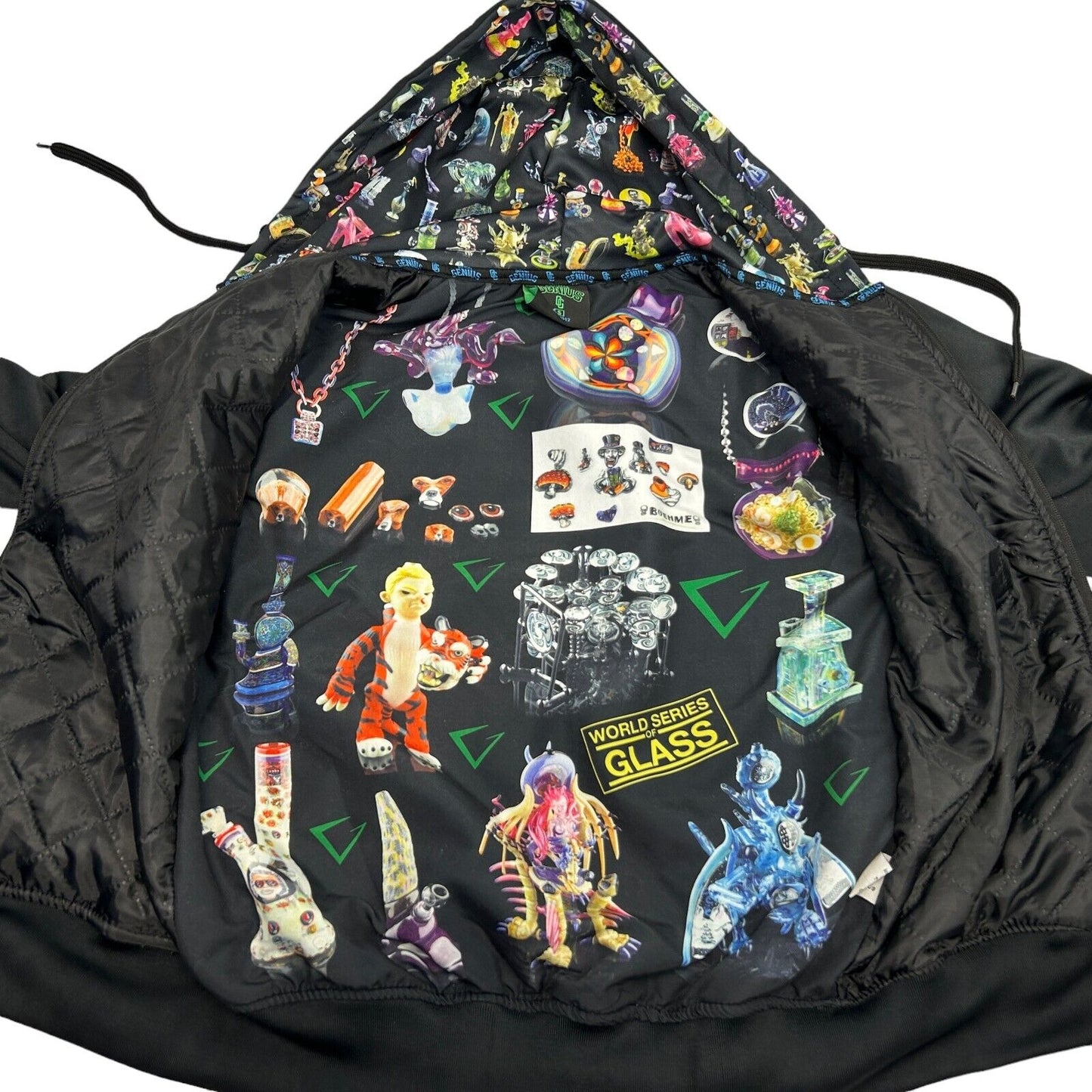 Sudadera con capucha de la Serie Mundial de Vidrio 2022 WSOG, marihuana, marihuana, marihuana, cannabis, agua, bong, pipas, sudadera con capucha de vidrio soplado de Las Vegas, negra, OG, estampado oficial de Genius AOP en toda la prenda