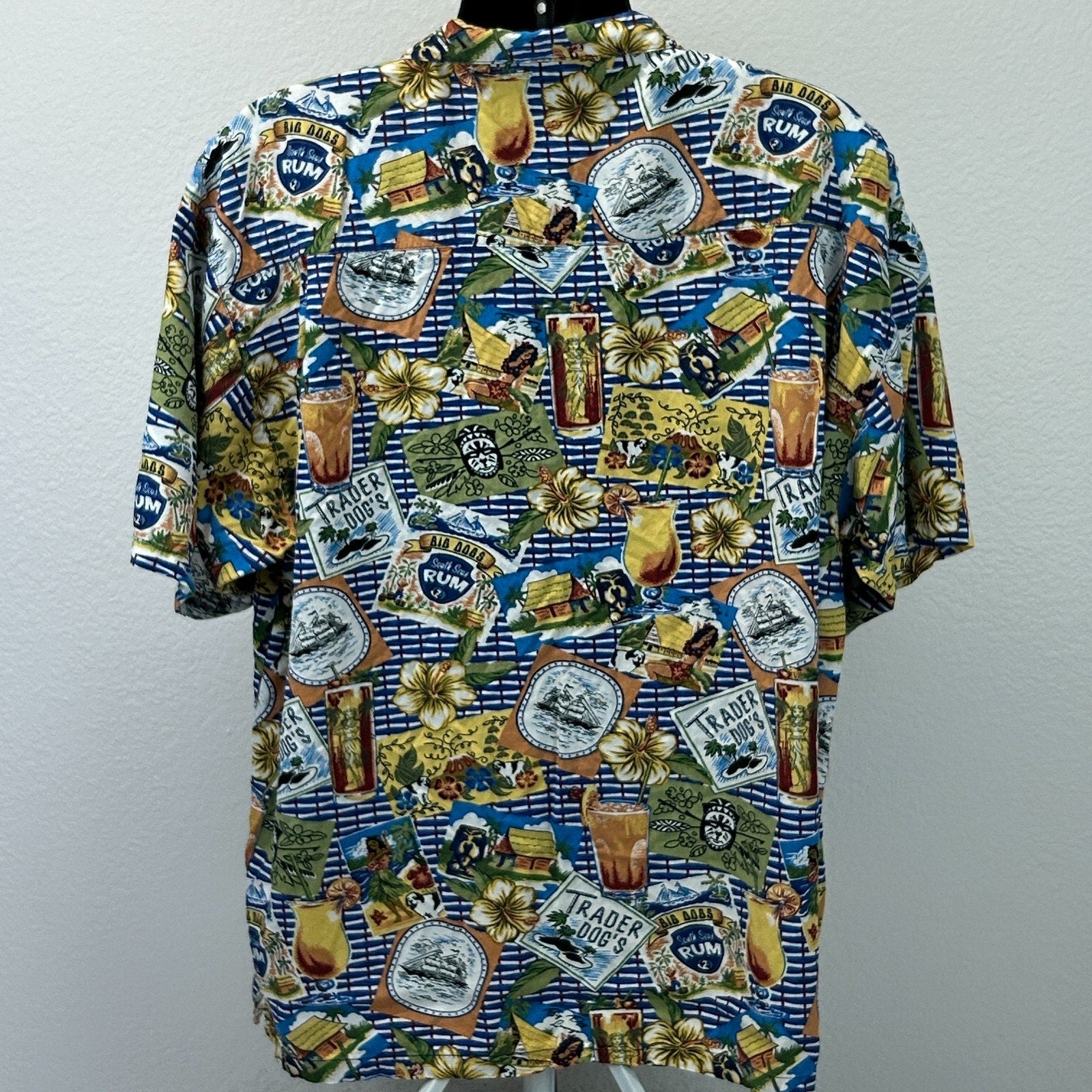 Big Dogs Hawaiian Camp Shirt Trader Dogs Rum Button Front Button Up Button Down Rayon Blue XXL 2XL