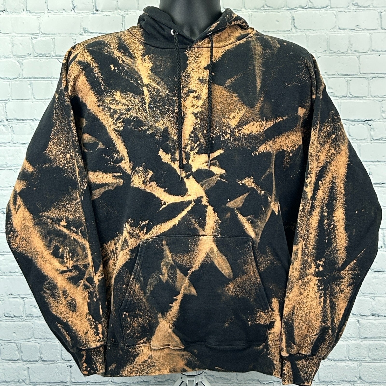 Bleach Reverse Tie Dye Hoodie Hooded Sweatshirt Black Long Sleeve Mens M Medium