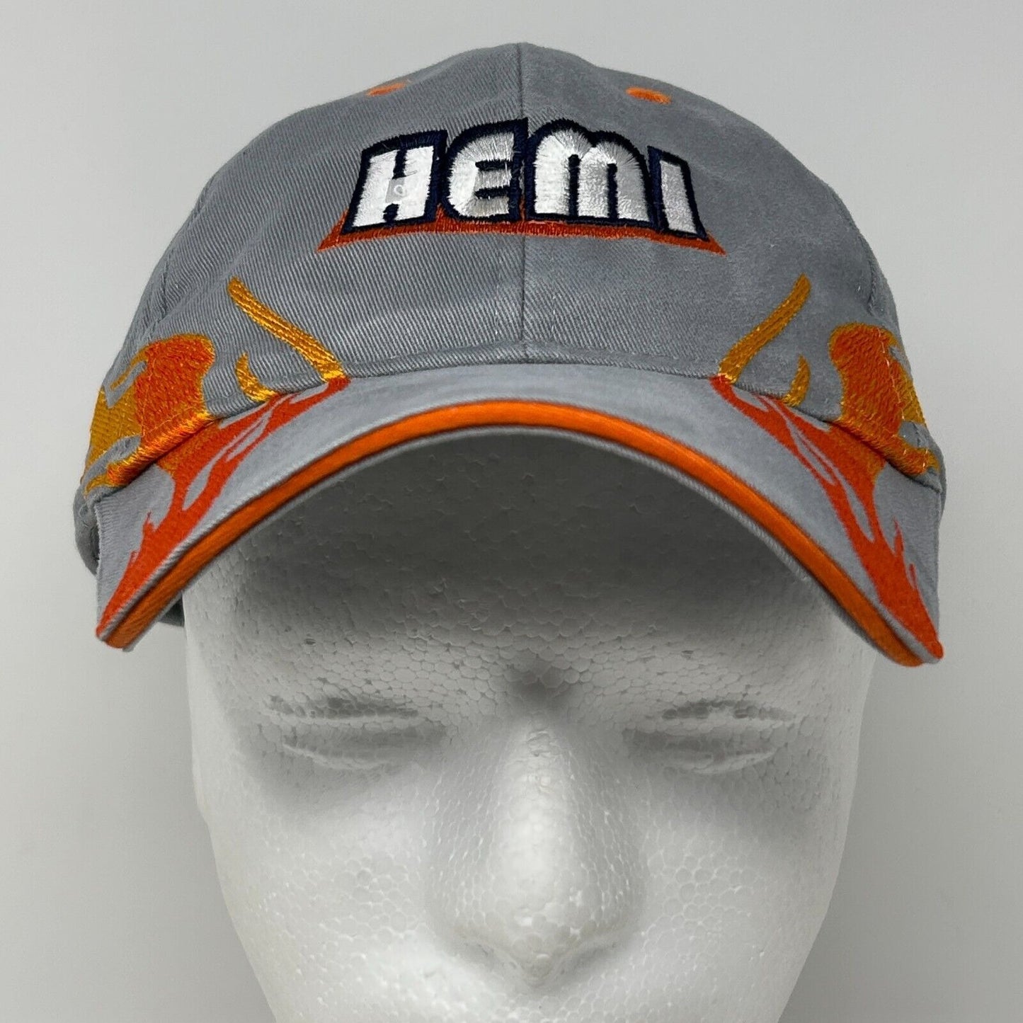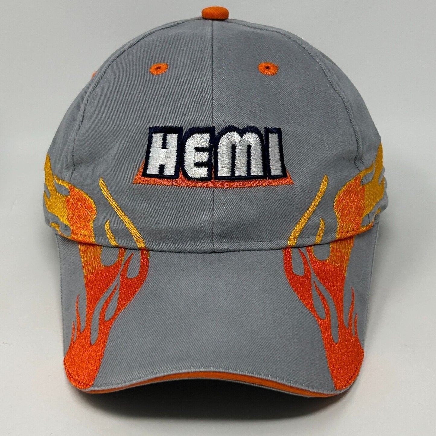 Dodge Hemi Engine Hat Baseball Cap Chrysler Fire Flames 6 Panel Strapback Gray