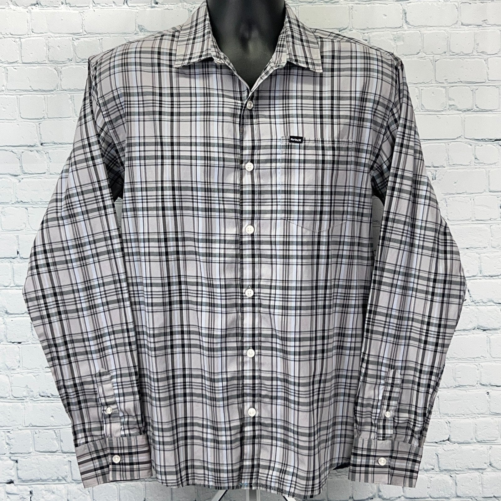 Hurley Plaid Button Front Shirt Gray Surfer Surfing Surfboarding Surfboarder Long Sleeve Mens M Medium
