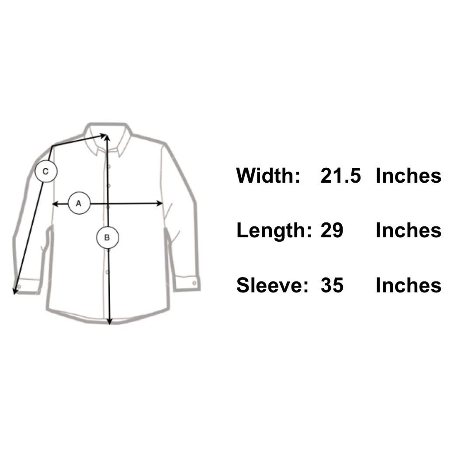 Sleeve Length 35" - From the center of the back of the neck to the shoulder to the bottom of the sleeve
