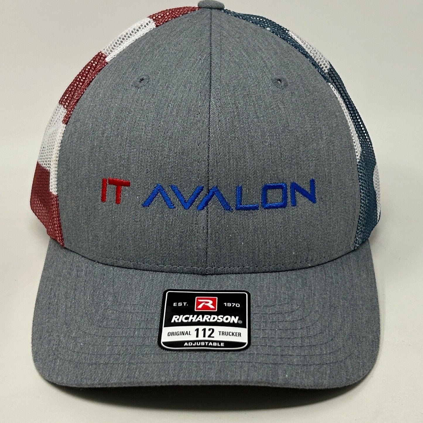 IT Avalon Trucker Hat Baseball Cap USA Flag Patriotic Technology Snapback Gray