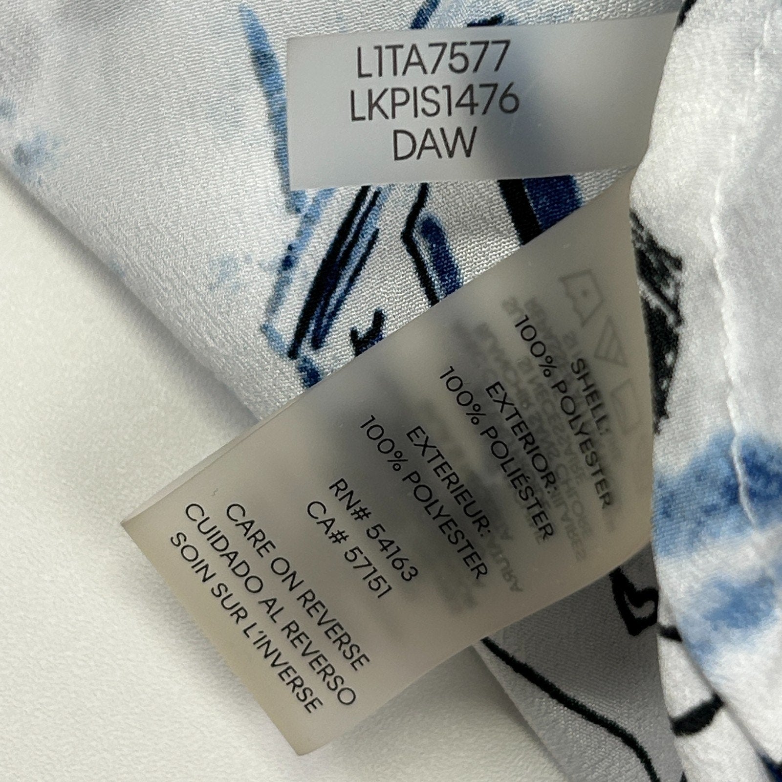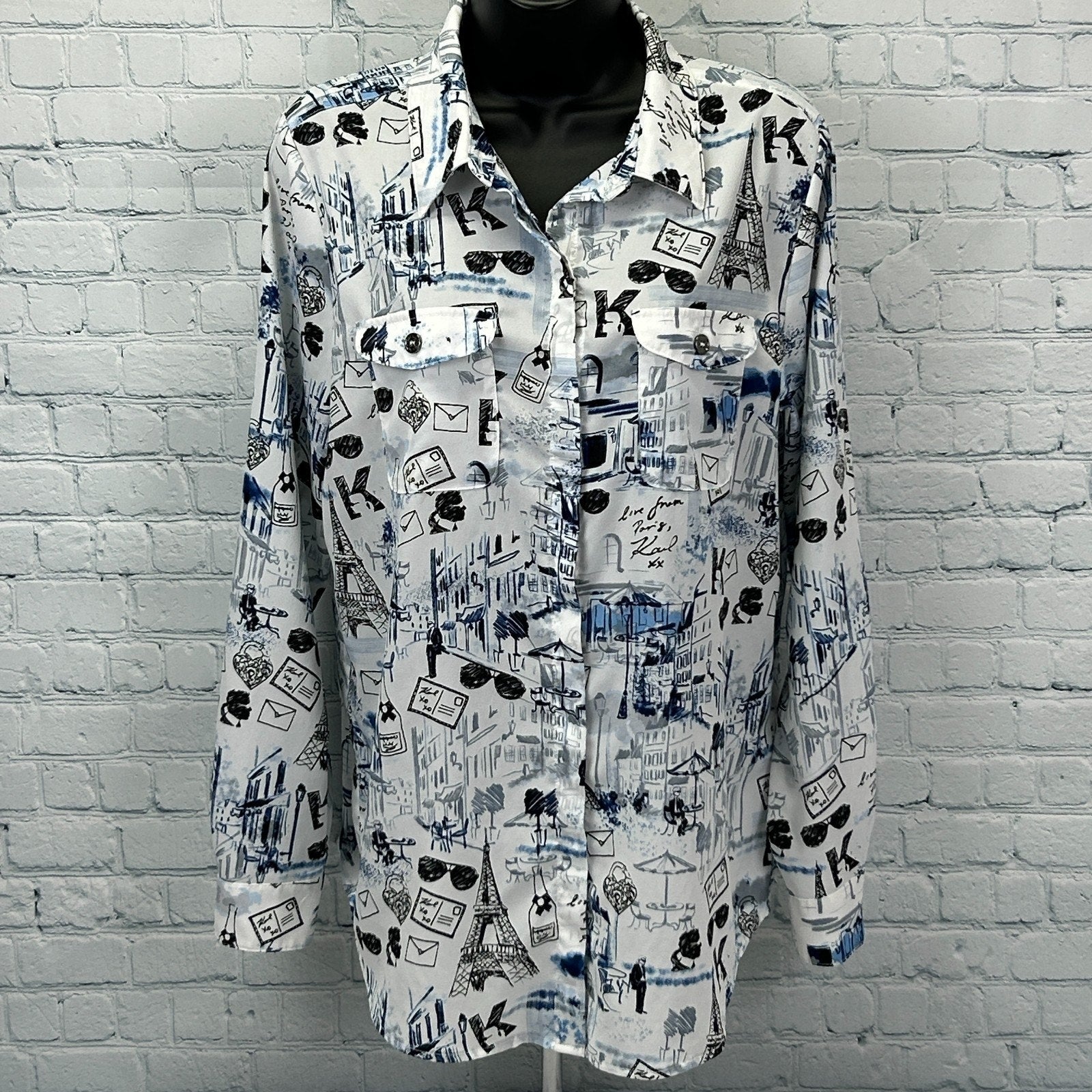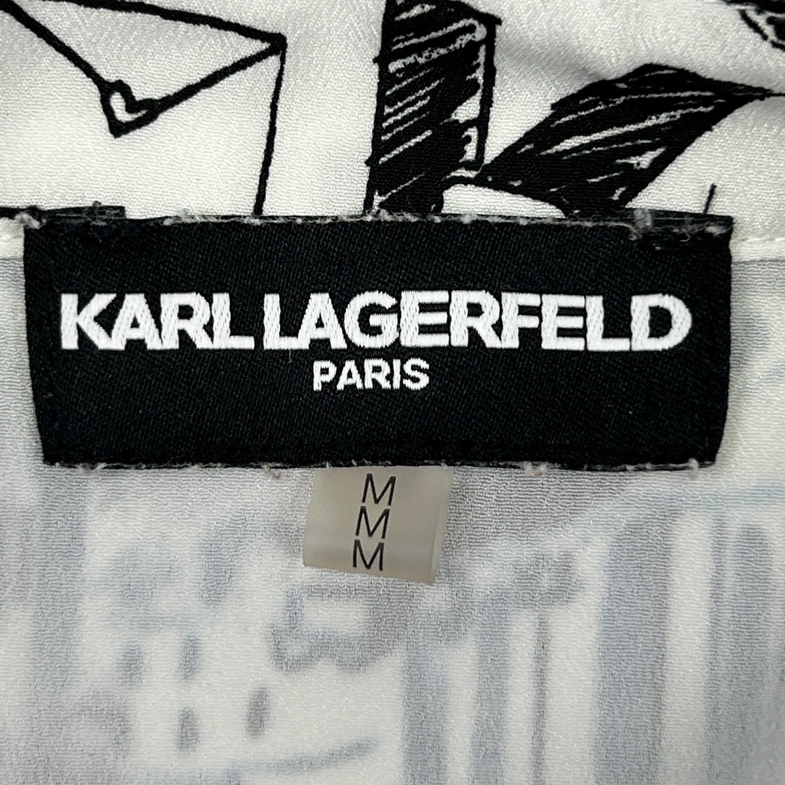 Karl Lagerfeld Paris Button Front Shirt Roll Tab Long Sleeve White AOP All Over Print France Button Up Button Down Blouse Womens M Medium