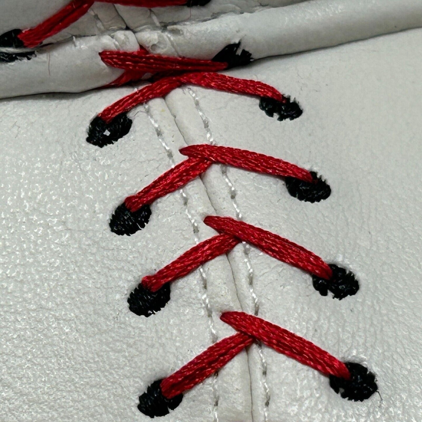 Has scratches, dings, spots, and a bit where the glossy has worn - no other flaws noticed. Has been cleaned and sanitized. See photos.