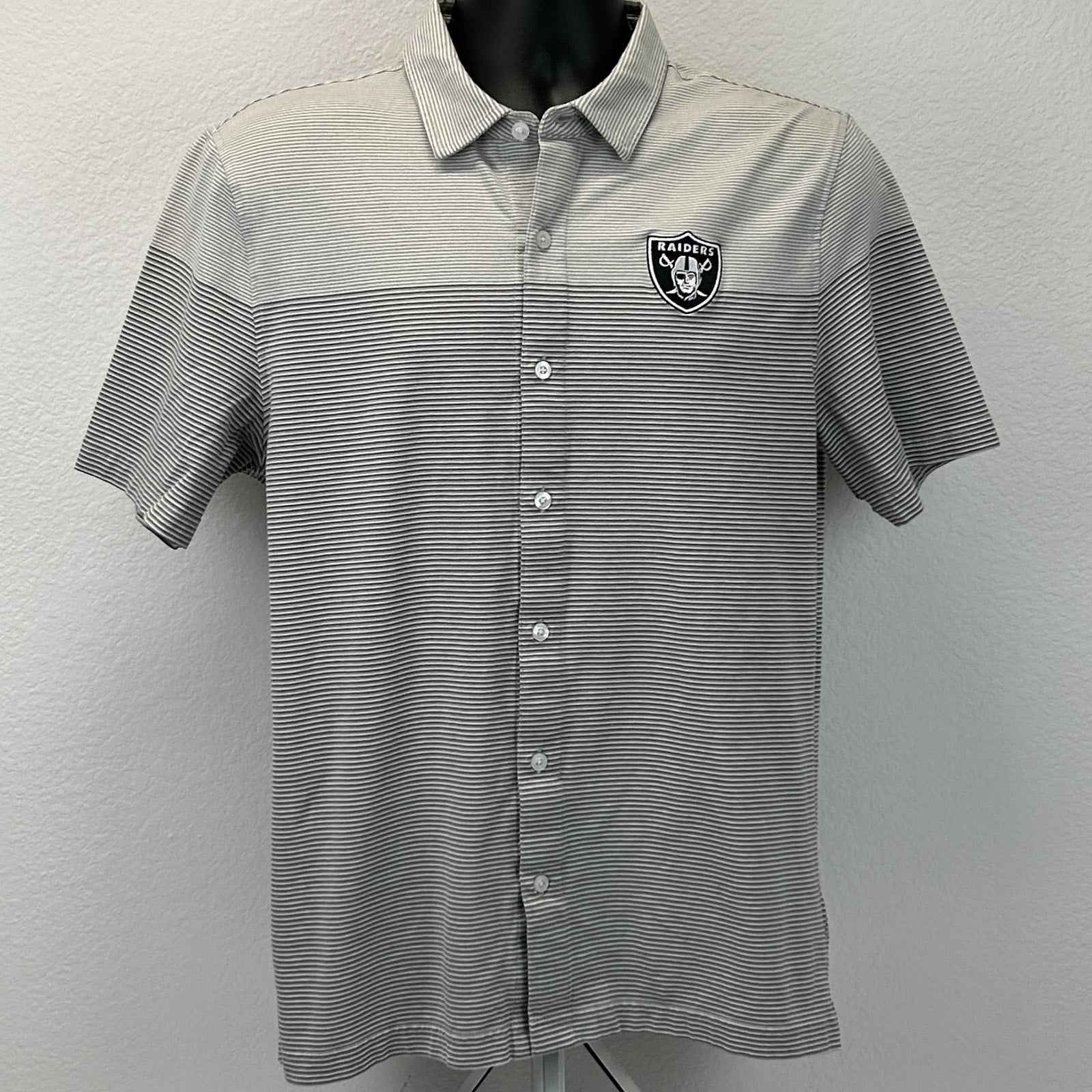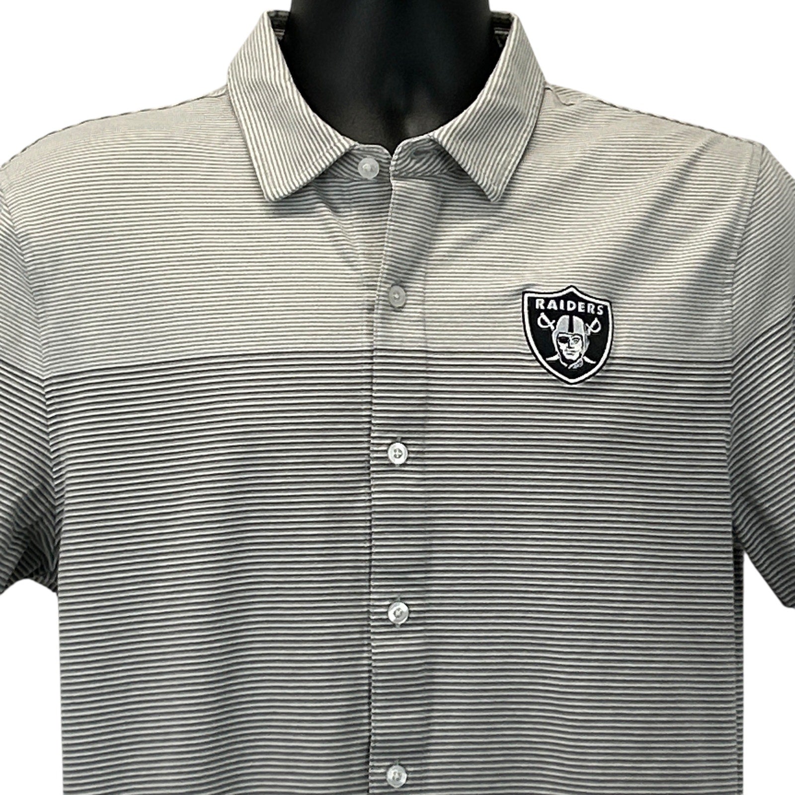 Las Vegas Raiders Button Front Shirt Gray Striped NFL Football Short Sleeve Cutter & Buck Button Up Button Down Mens L Large