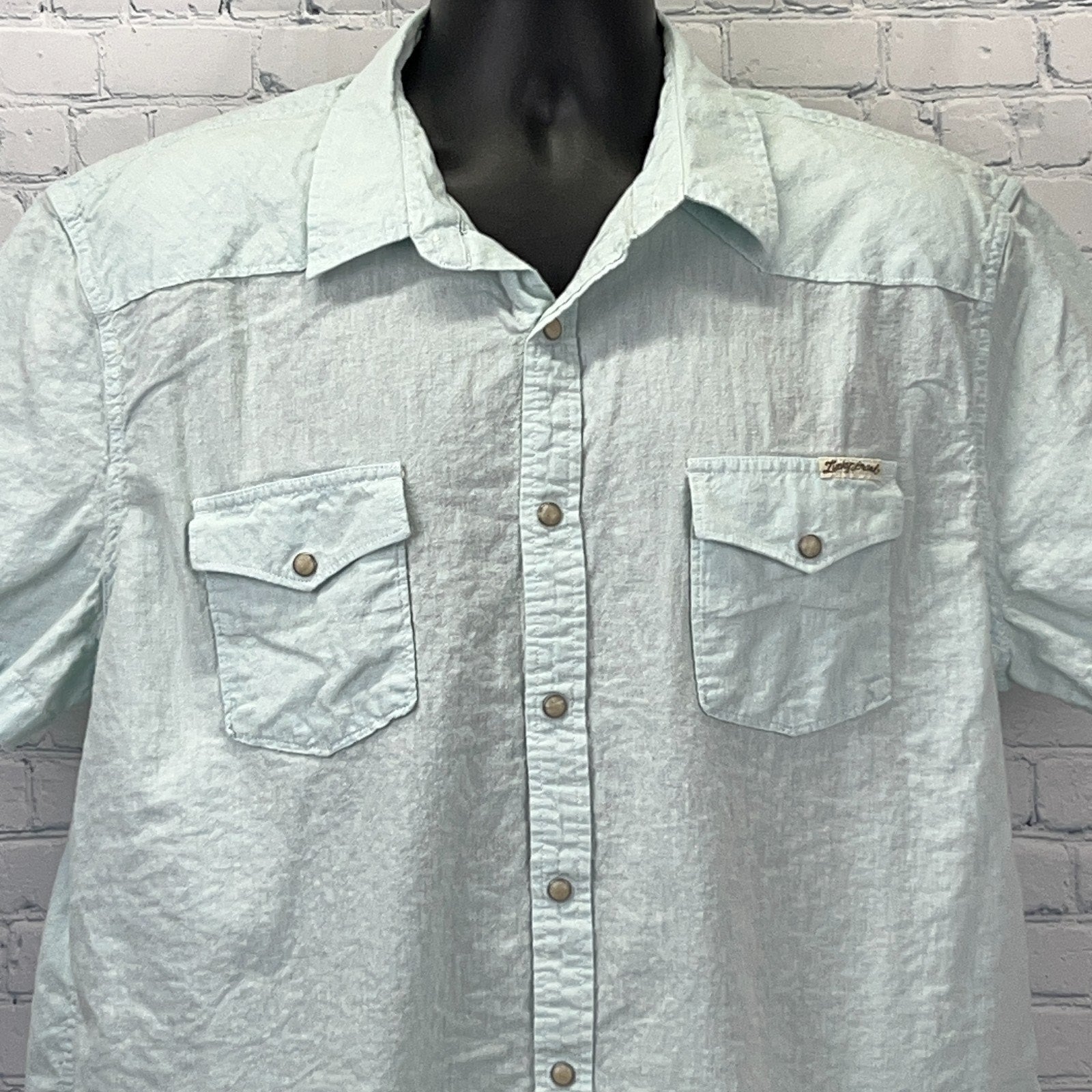 Lucky Brand Sportswear Pearl Snap Button Front Shirt Blue Linen Blend Western Cowboy Button Up Button Down Short Sleeve Mens 2XL XXL