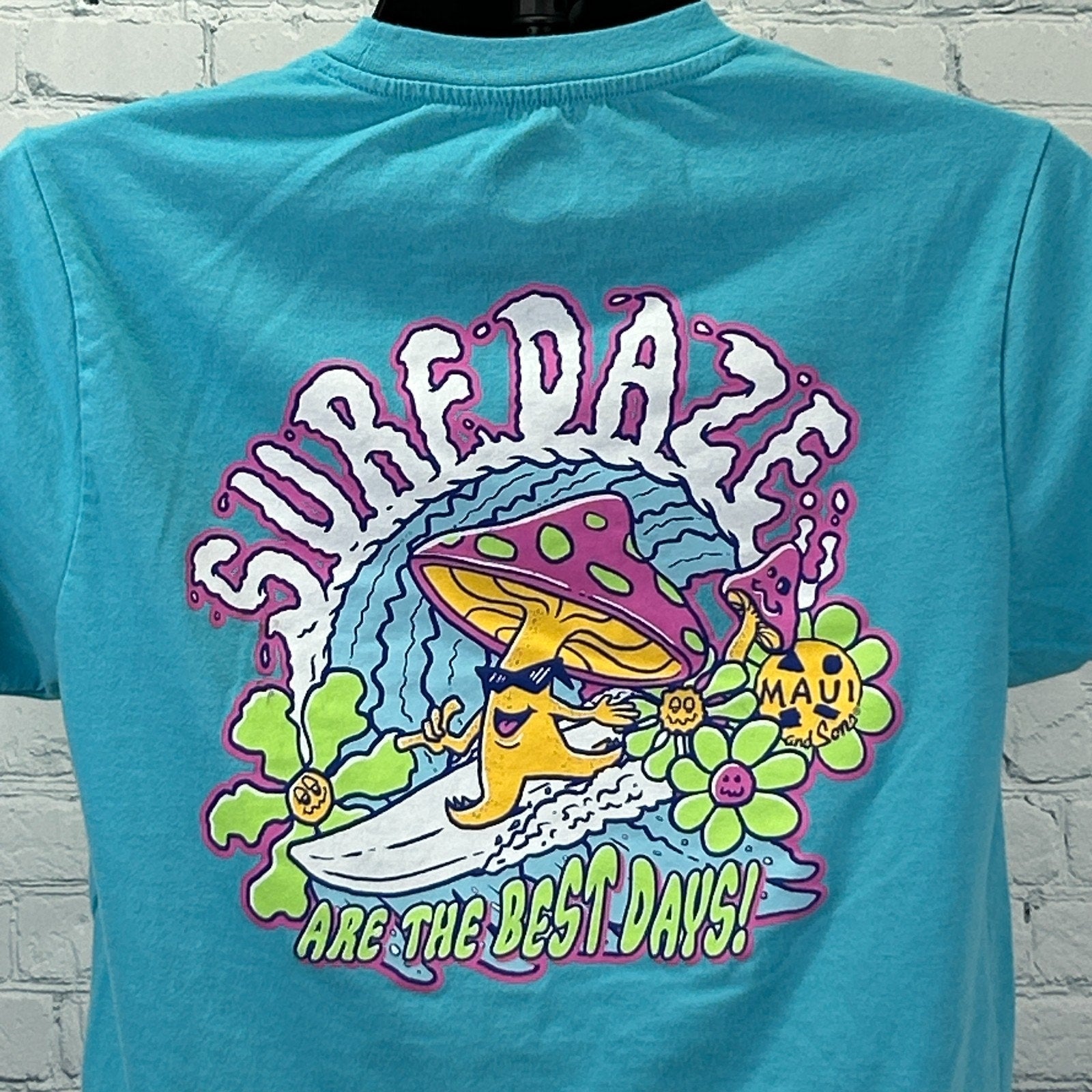 Maui and Sons Surf Daze Are the Best Days T Shirt High Shrooms Magic Mushrooms Hippie Hippy Surfer Surfing Surfboarding Surfboarder Blue M Medium Graphic Tee