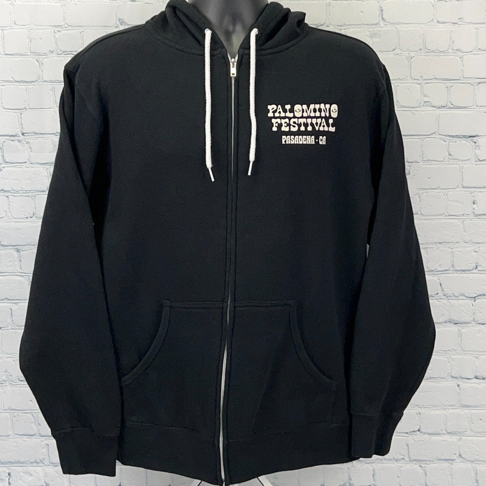 Palomino Festival 2022 Hoodie Hooded Sweatshirt Black California Willie Nelson Kacey Musgraves Jason Isbell Turnpike Troubadours Alt-Country Music Concert Long Sleeve Pockets Full Zip Mens L Large