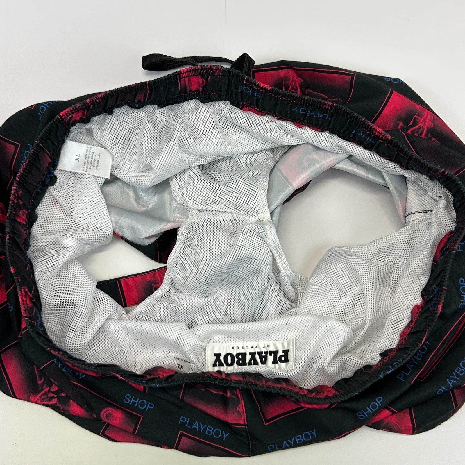 Playboy by Pacsun Swim Trunks Shorts Playboy Shop Swimming Swimmer Mesh Lined Pockets Drawstring Black XL X-Large