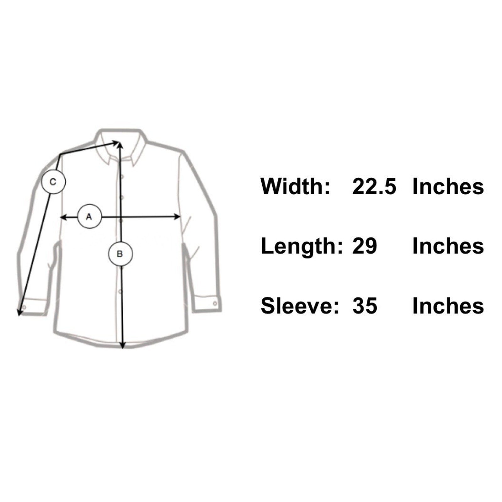 Sleeve Length 35" - From the center of the back of the neck to the shoulder to the bottom of the sleeve