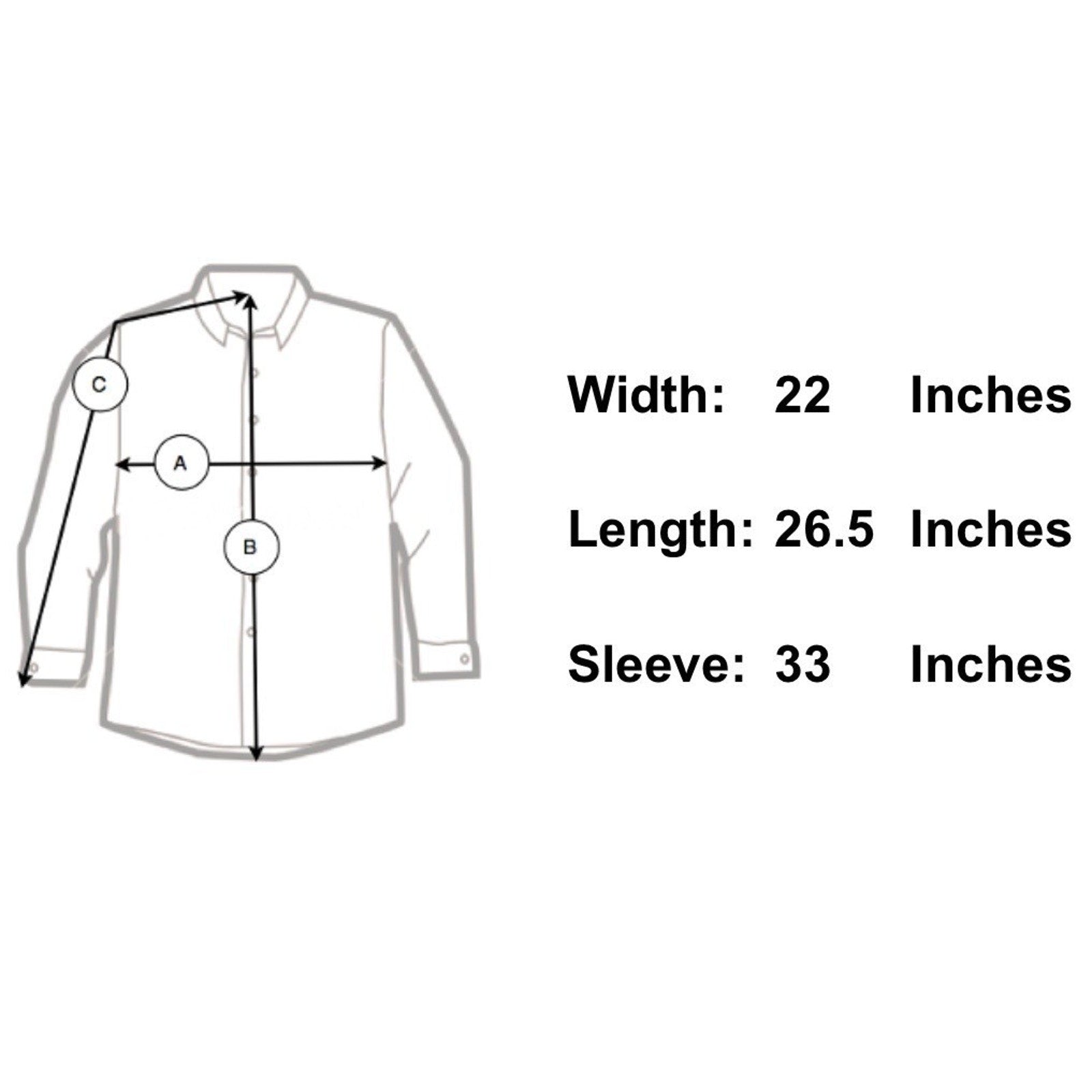 Sleeve Length 33" - From the center of the back of the neck to the shoulder to the bottom of the sleeve