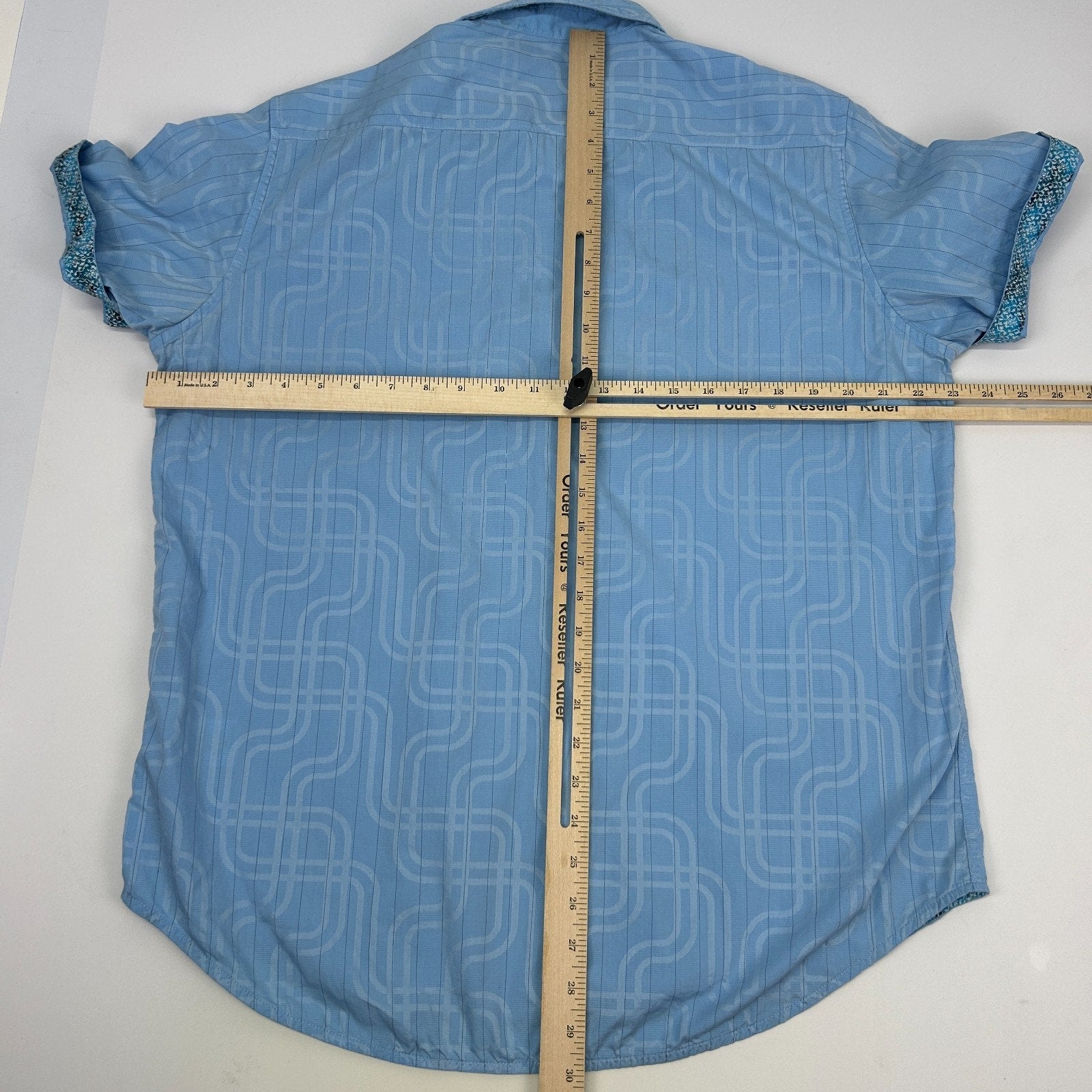 Robert Graham Paisley Button Front Shirt Contrasting Flip Cuff Button Up Button Down Short Sleeve Blue Mens L Large