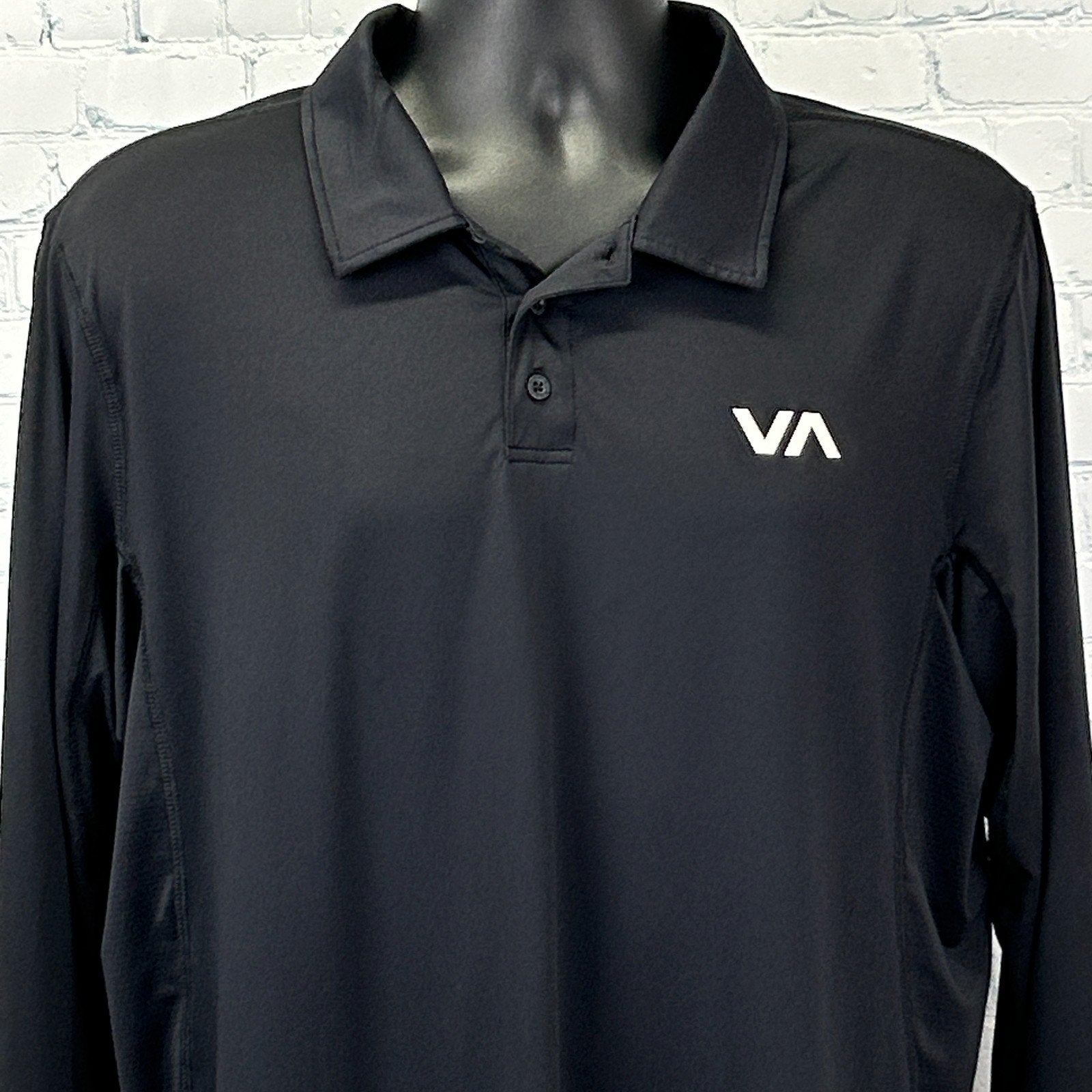 RVCA Polo Shirt PM Tenore Skater Skating Skateboarding Skateboarder Surfer Surfing Surfboarder Surfboarding Streetwear Brazilian Jiu Jitsu BJJ Graffiti Street Art MMA UFC Stretch Vented Long Sleeve Black L Large AVYKT00362